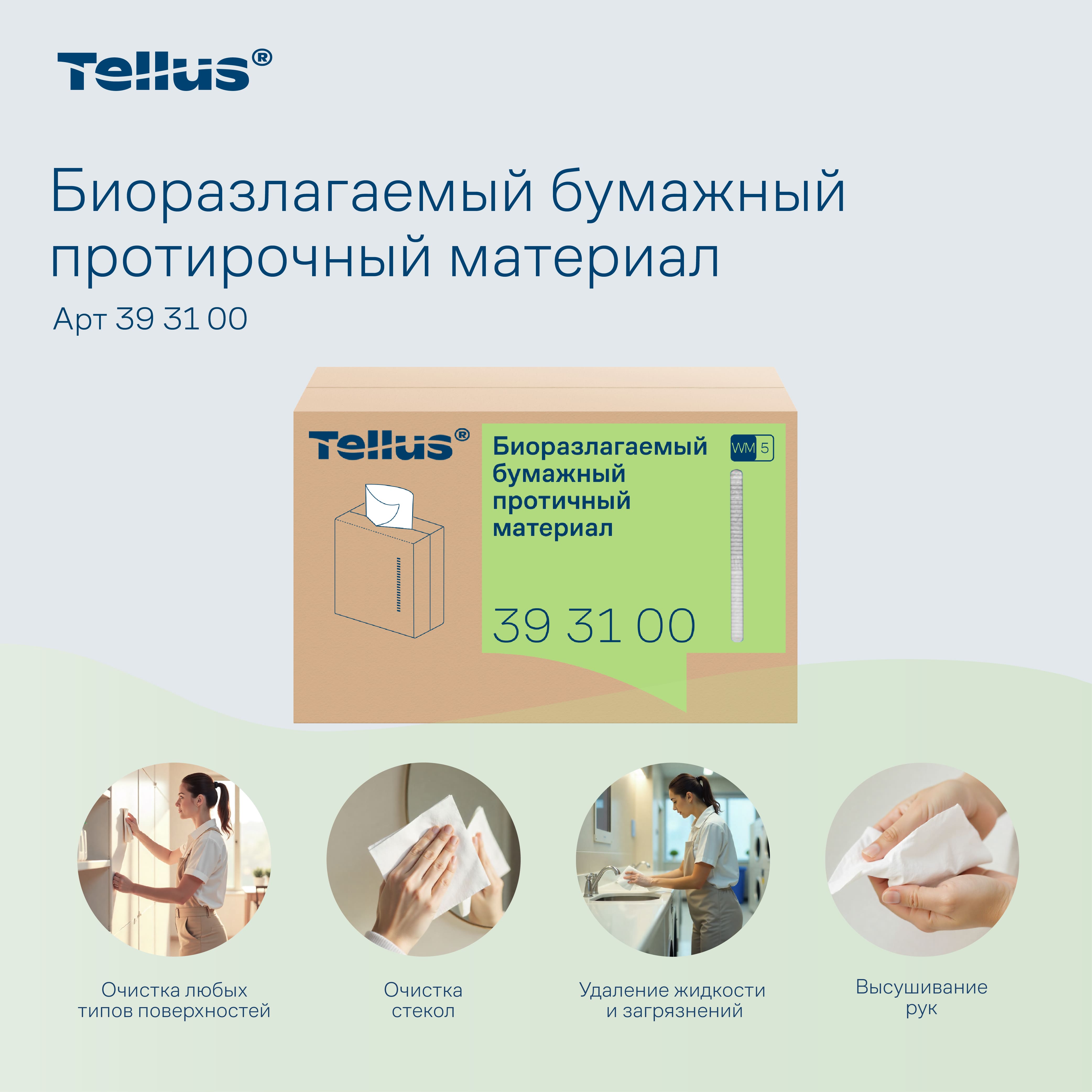 Tellus биоразлагаемый бумажный протирочный материал