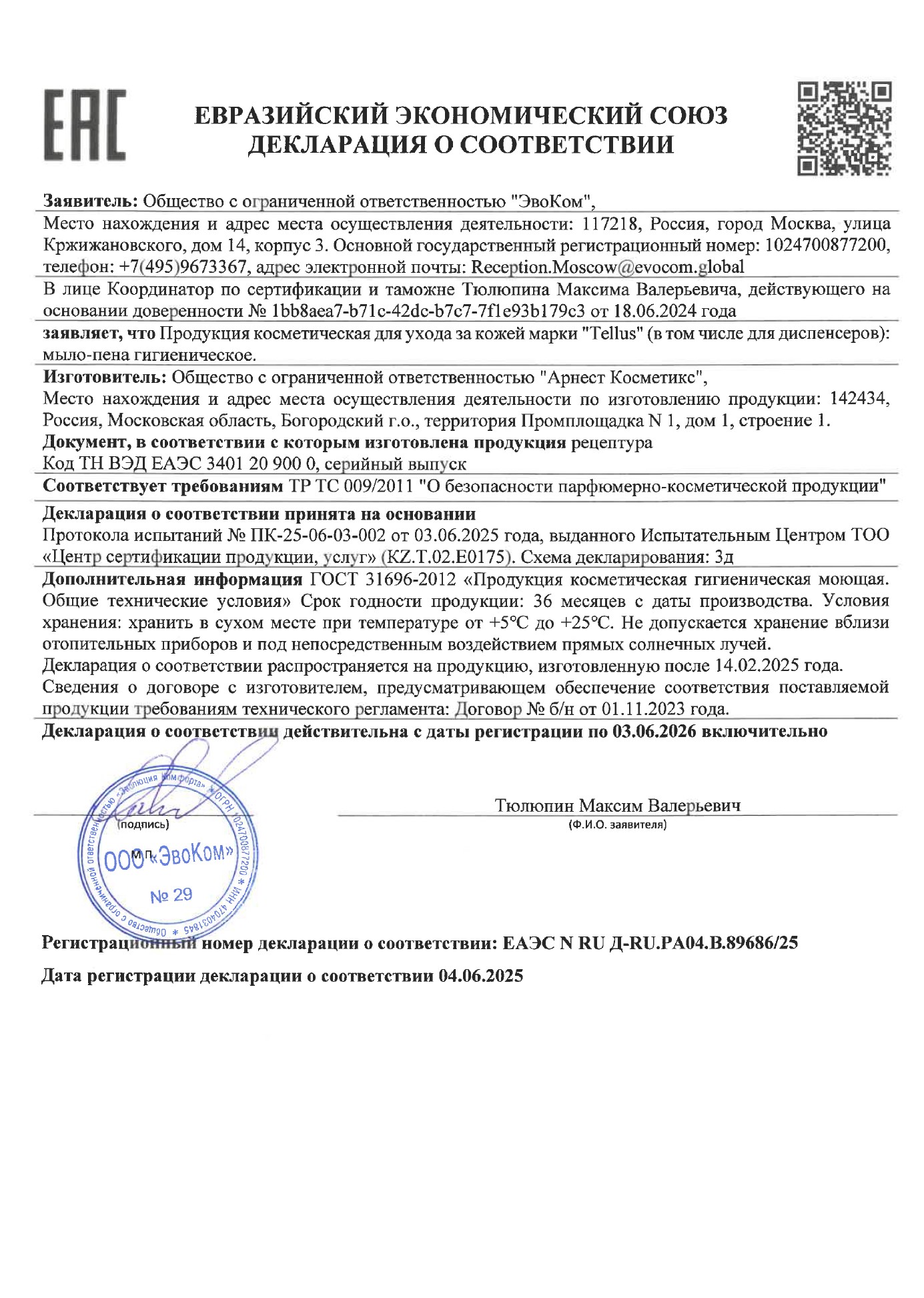 Предложите посетителям мыло-пену, не содержащее отдушек и красителей. Tellus мыло-пена гигиеническое эффективно устраняет грязь и бактерии, имеет правильную реологию. Устраняет неприятные запахи и микробы. Безопасно благодаря мягким биоразлагаемым ПАВ на основе вытяжки из свеклы и кокосового масла. Подходит для разных типов кожи. Специальный картридж образует мягкую кремовую пену, обеспечивая 2500 порций.