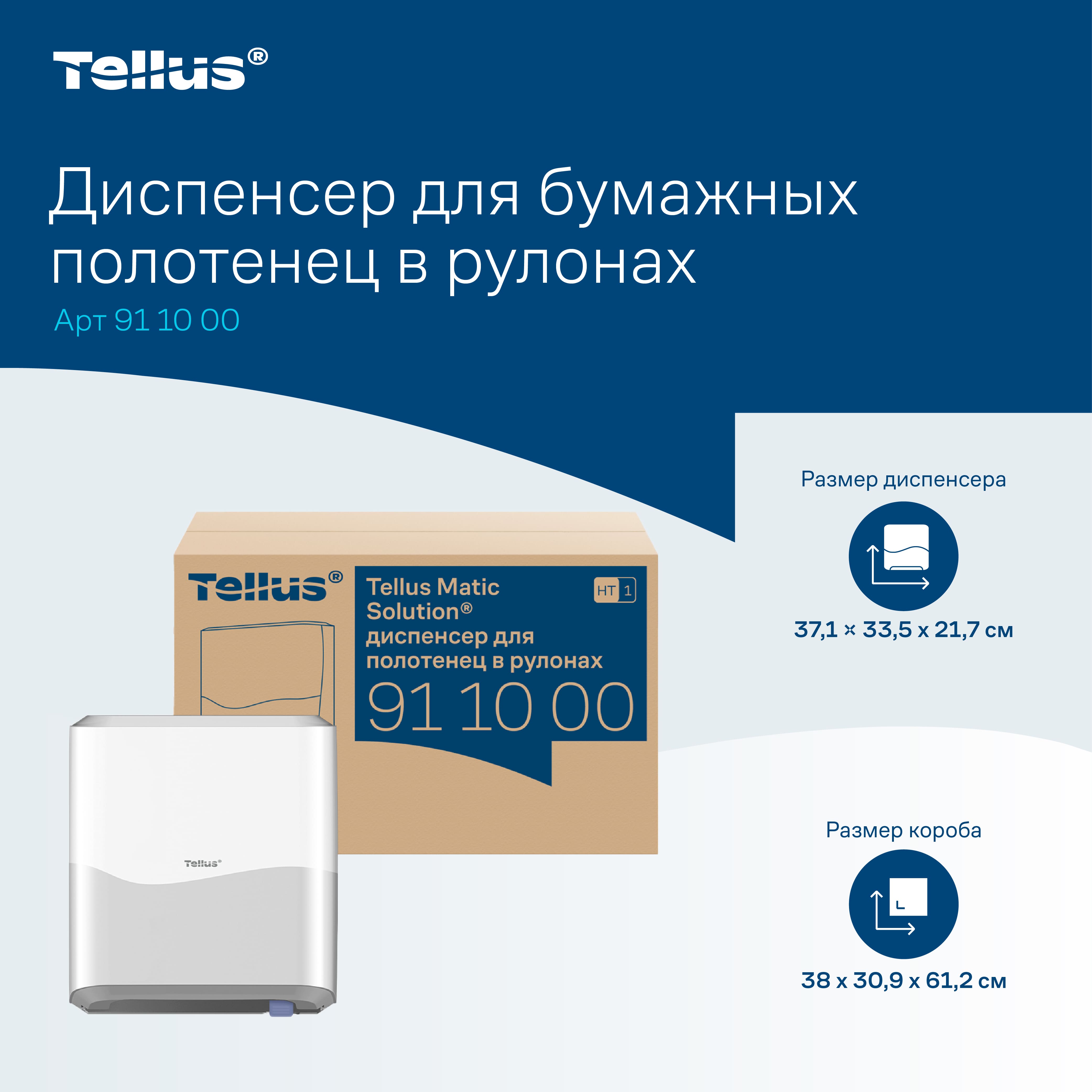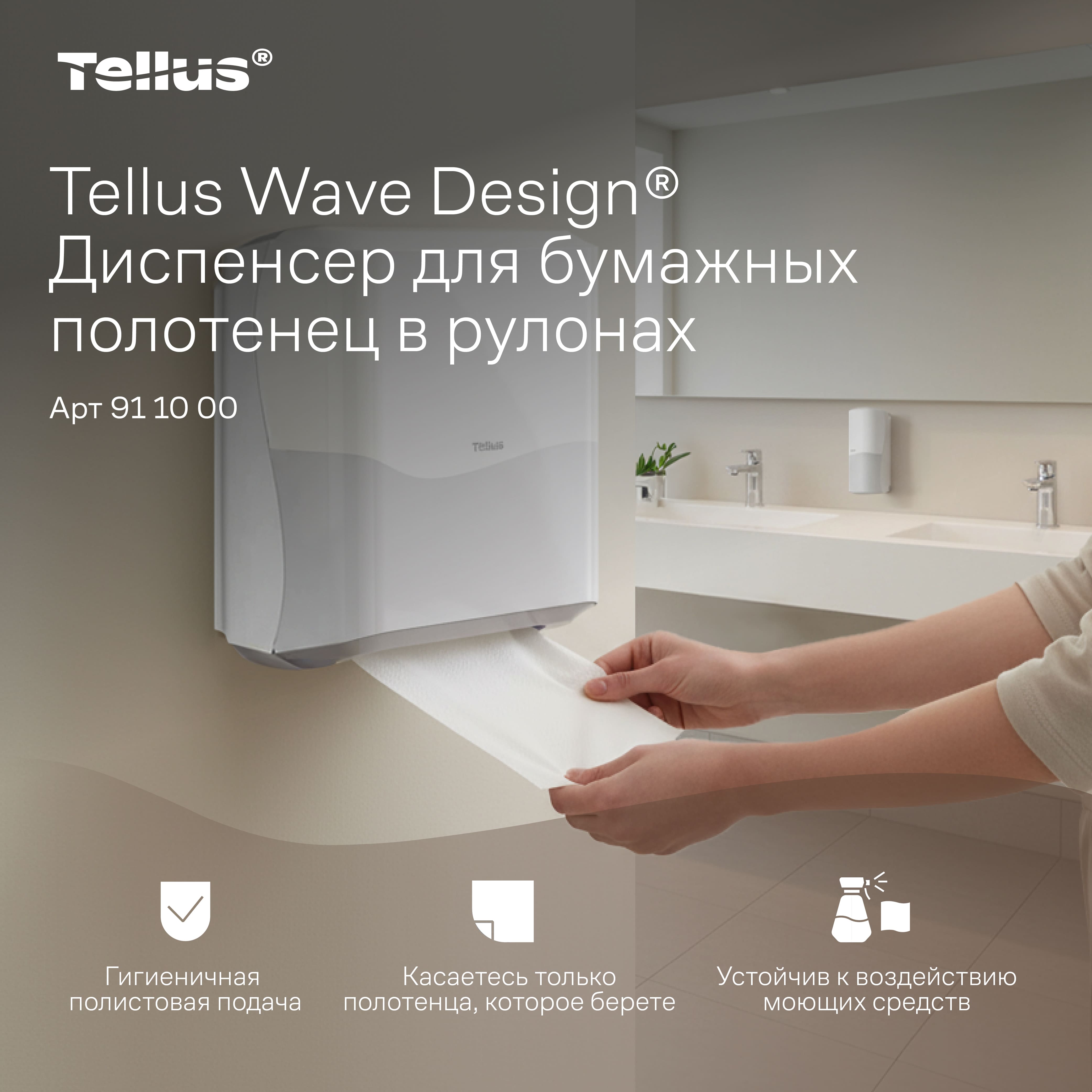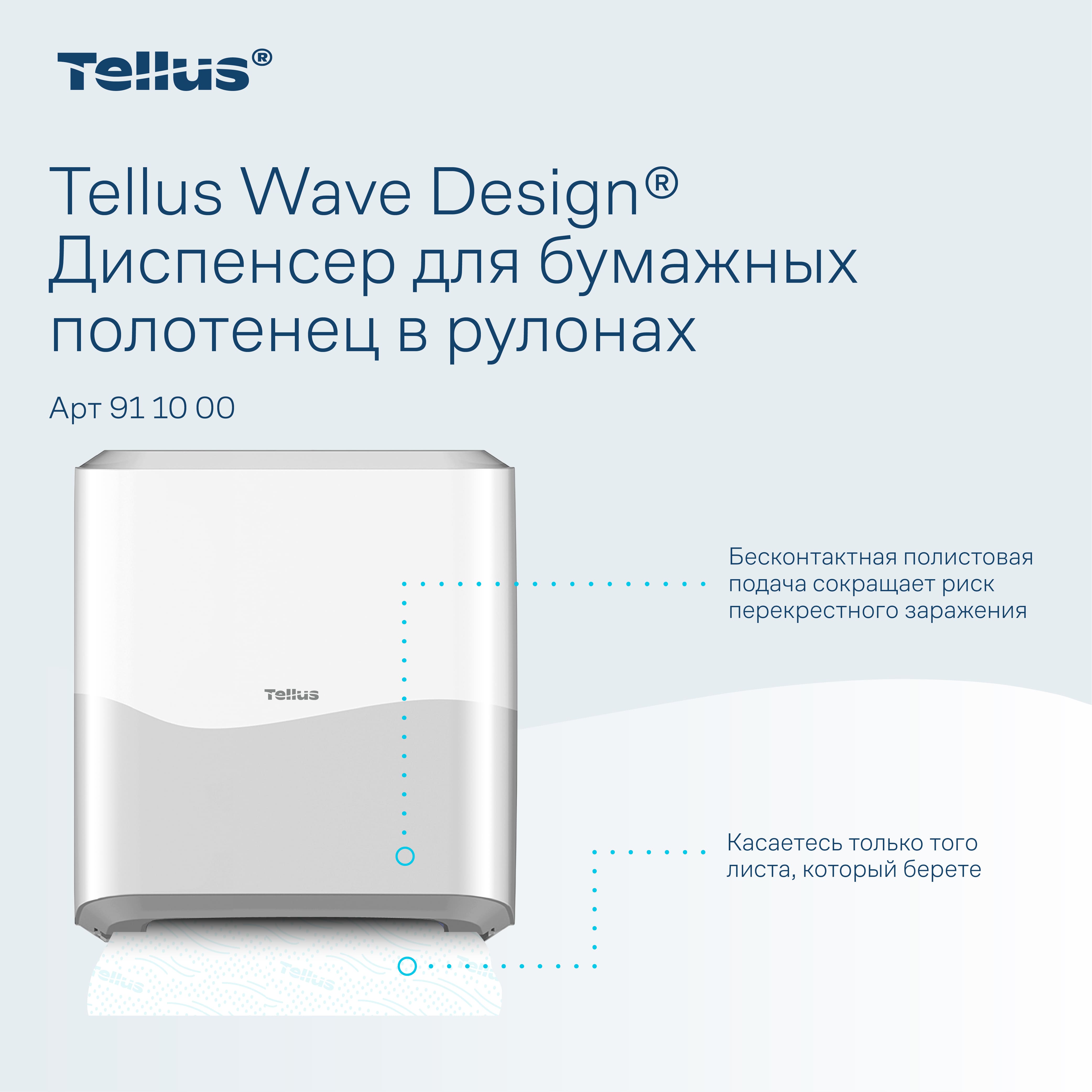 Tellus Matic Solution® диспенсер для полотенец для рук в рулонах — простая в обслуживании система с полистовым отбором для туалетных комнат высокой проходимости. Лаконичный и универсальный дизайн диспенсеров подходит к любому интерьеру, интуитивно понятная конструкция позволяет легко взаимодействовать с диспенсером на всех этапах — от монтажа до повседневного использования.