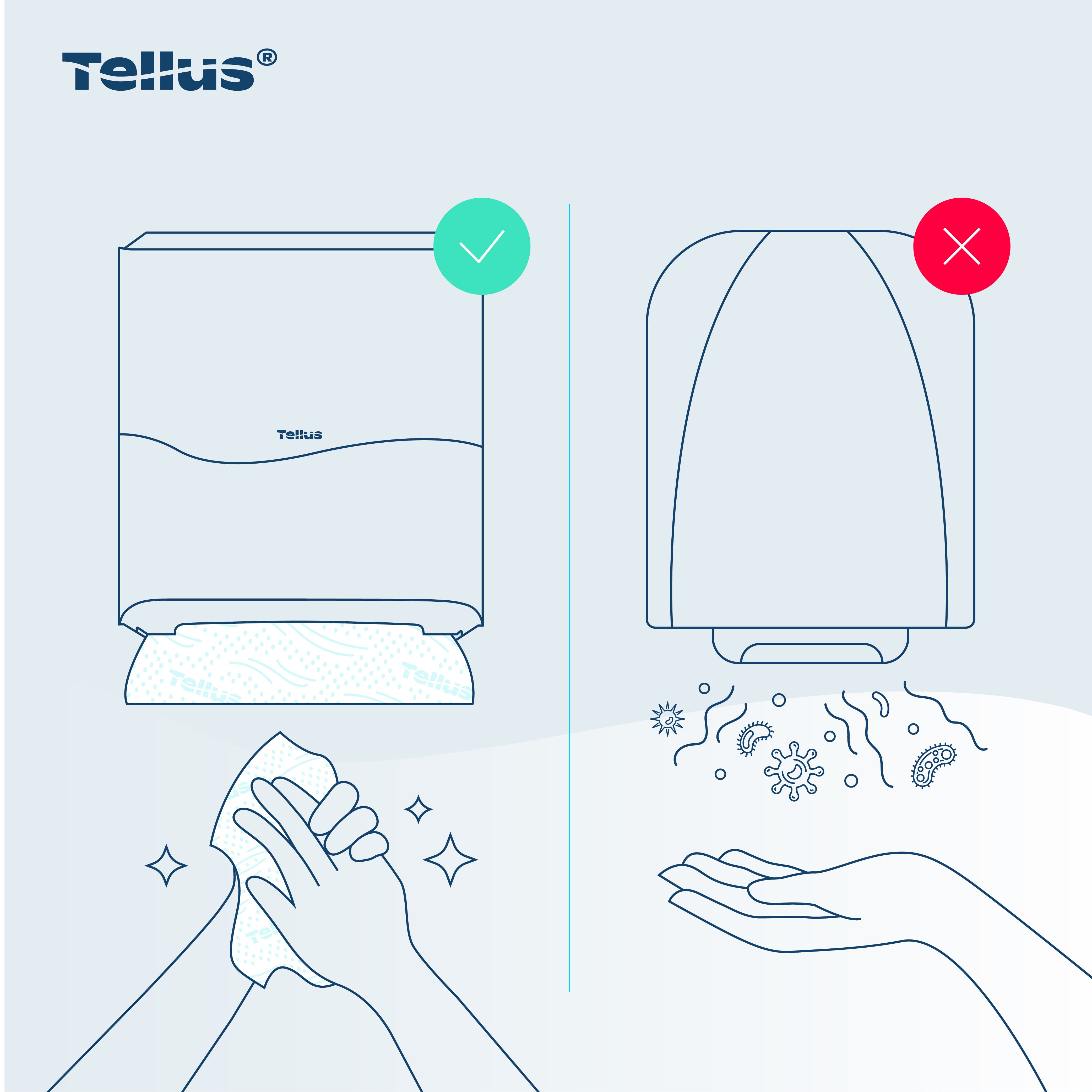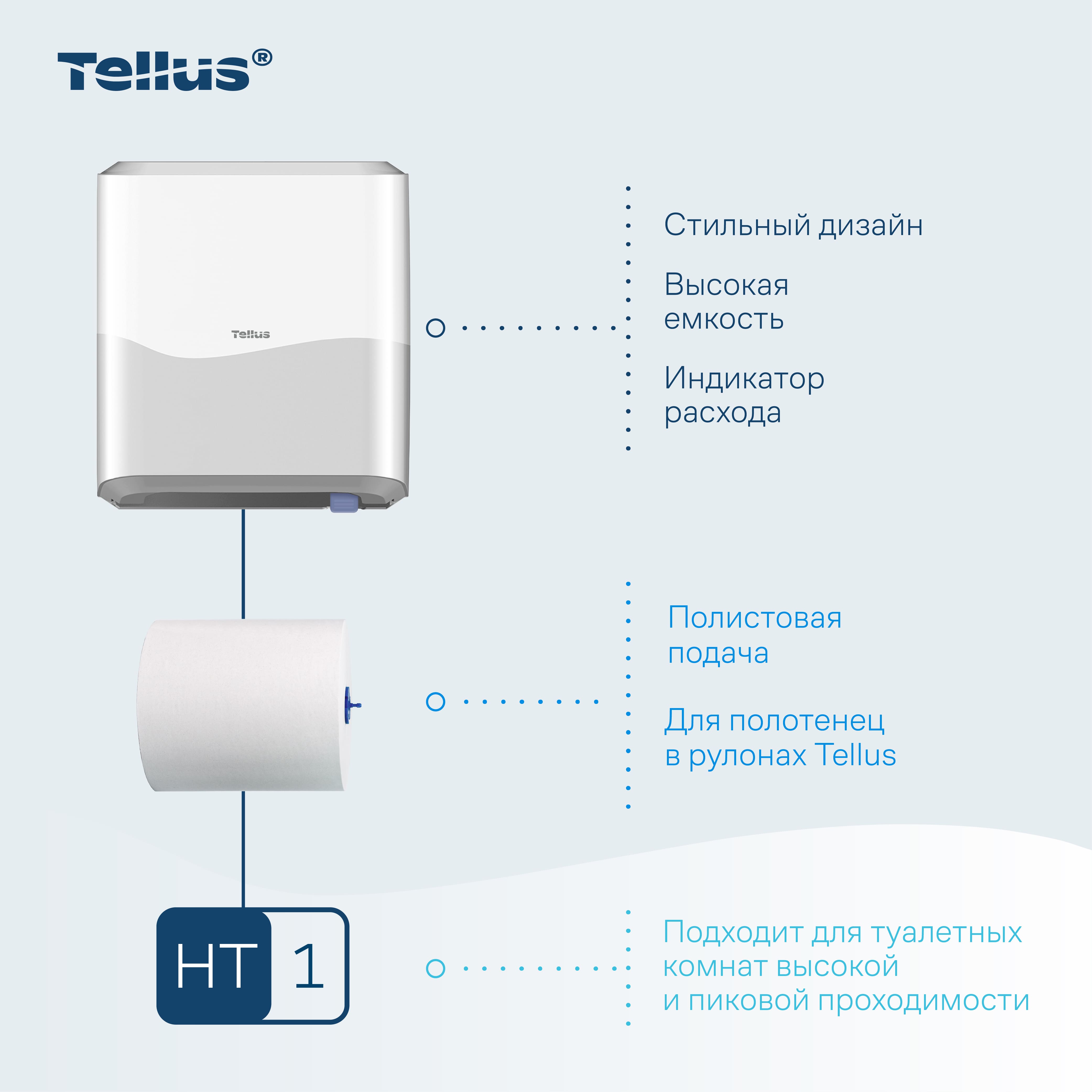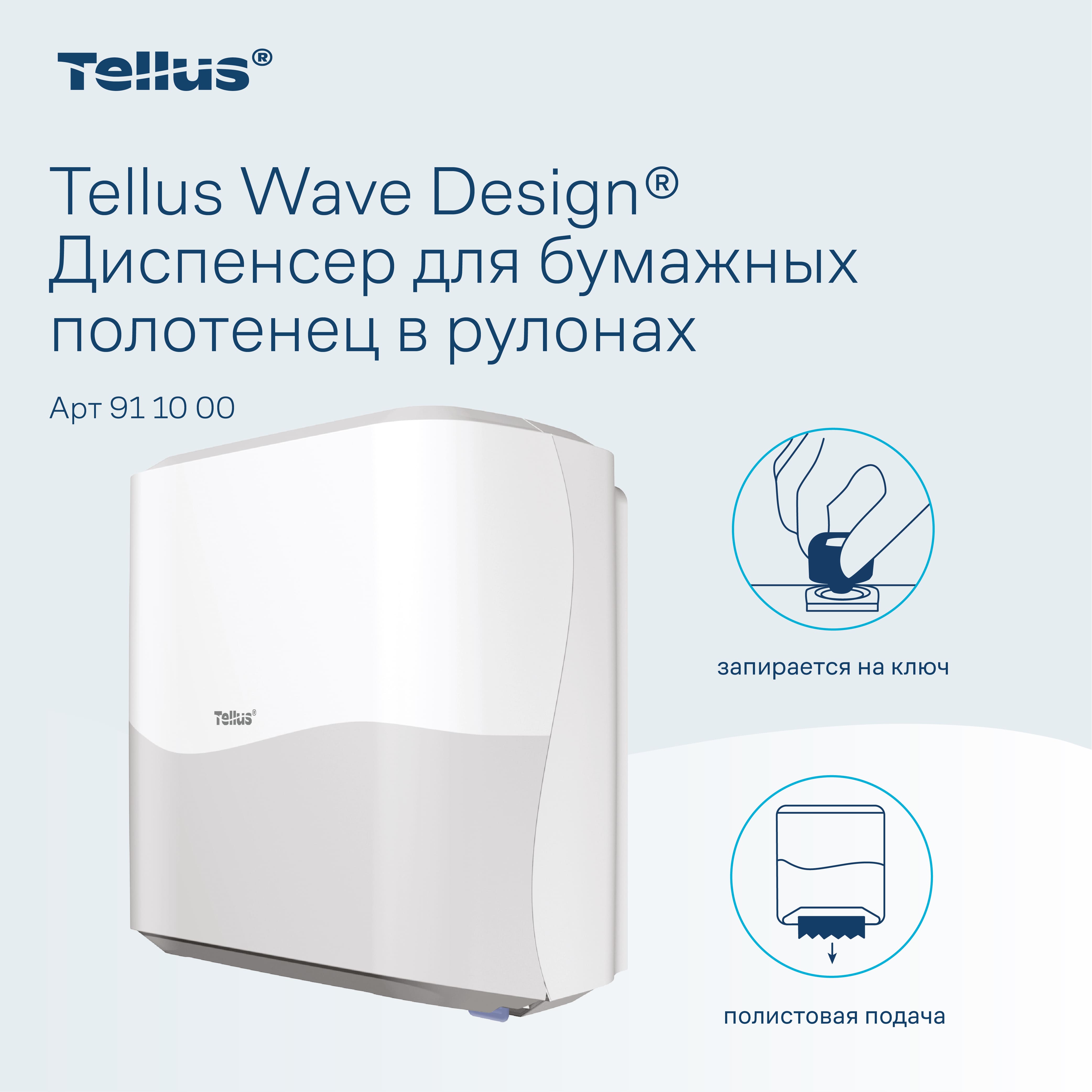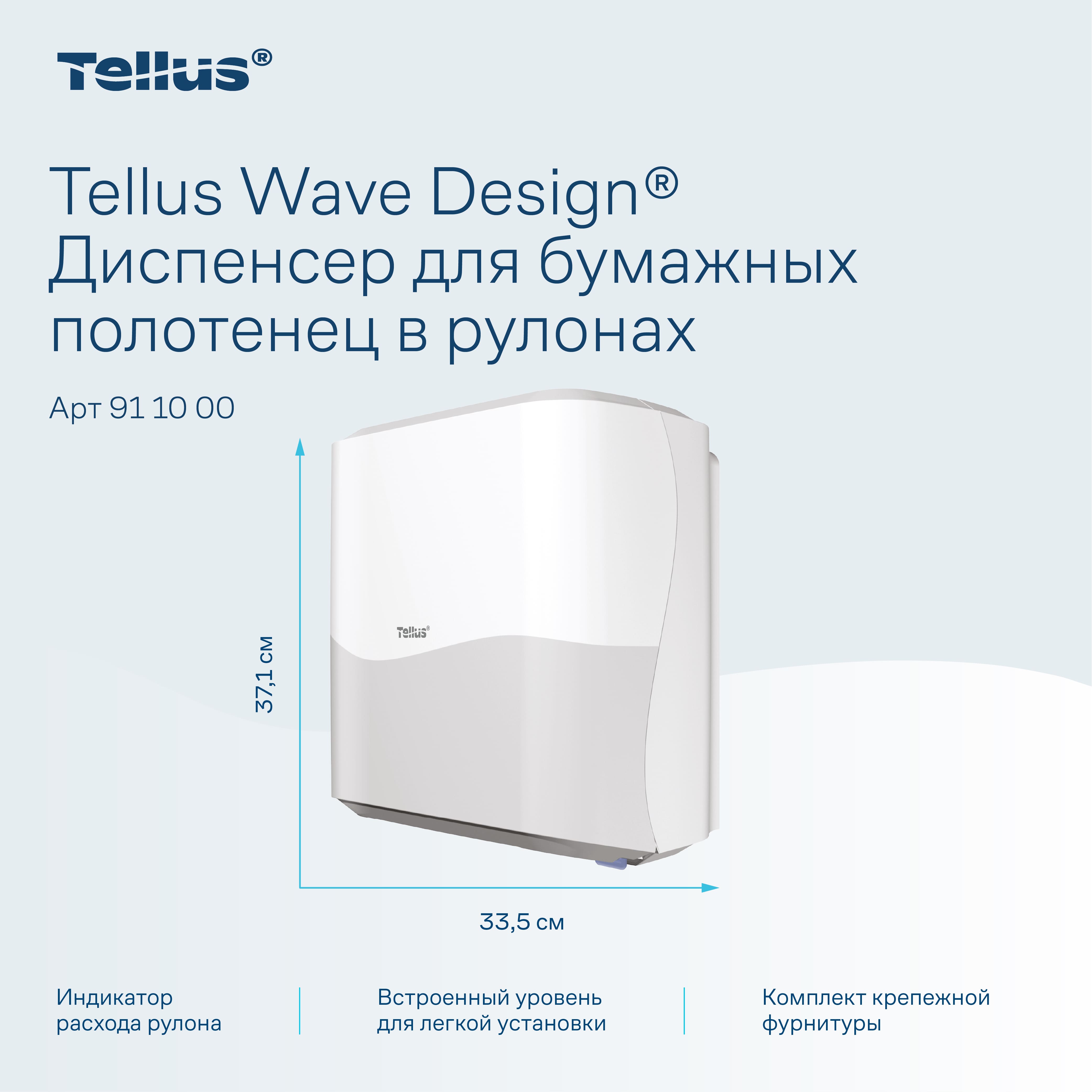 Tellus Matic Solution® диспенсер для полотенец для рук в рулонах — простая в обслуживании система с полистовым отбором для туалетных комнат высокой проходимости. Лаконичный и универсальный дизайн диспенсеров подходит к любому интерьеру, интуитивно понятная конструкция позволяет легко взаимодействовать с диспенсером на всех этапах — от монтажа до повседневного использования.