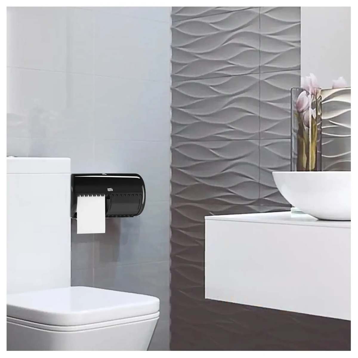 Tork диспенсер для туалетной бумаги в стандартных рулонах серии Elevation подходит для туалетных комнат с низкой проходимостью и снижает необходимость в техническом обслуживании, вмещая два рулона обычной туалетной бумаги. Диспенсеры Tork Elevation — это уникальное сочетание дизайна и функциональности, для лучших впечатлений ваших гостей.