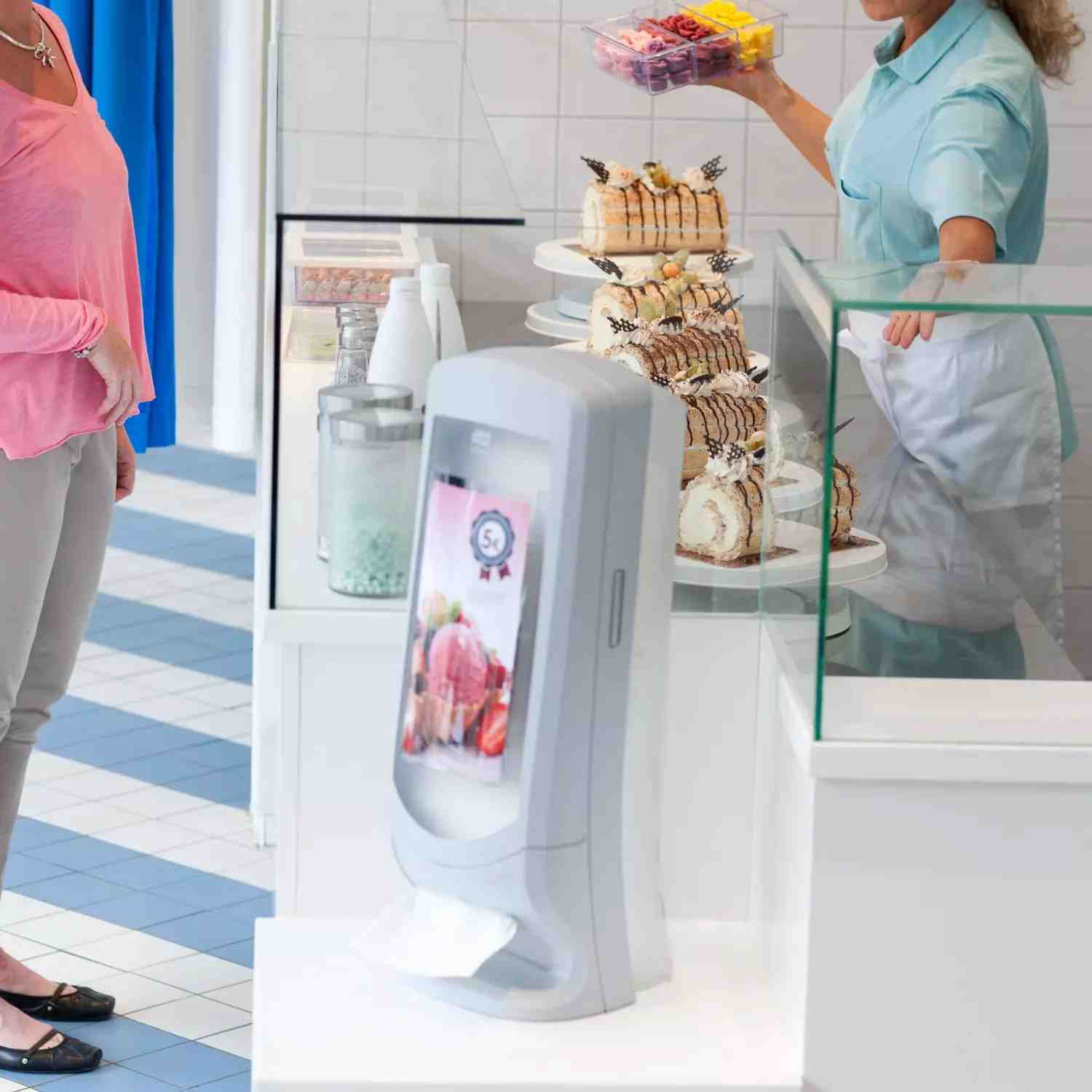- В диспенсере предусмотрено окошко для рекламы AD-a-Glance® — используйте его для привлечения внимания гостей к вашим продуктам или сообщайте о специальных предложениях