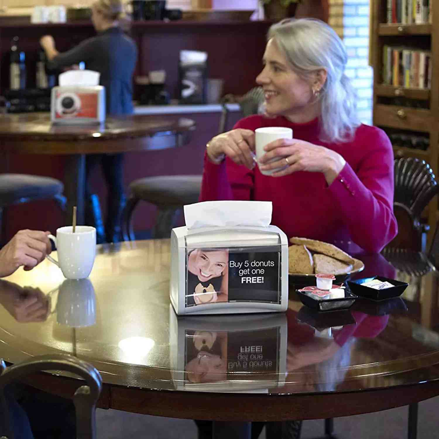 - В диспенсере предусмотрено окошко для рекламы AD-a-Glance® — используйте его для привлечения внимания гостей к вашим продуктам или сообщайте о специальных предложениях