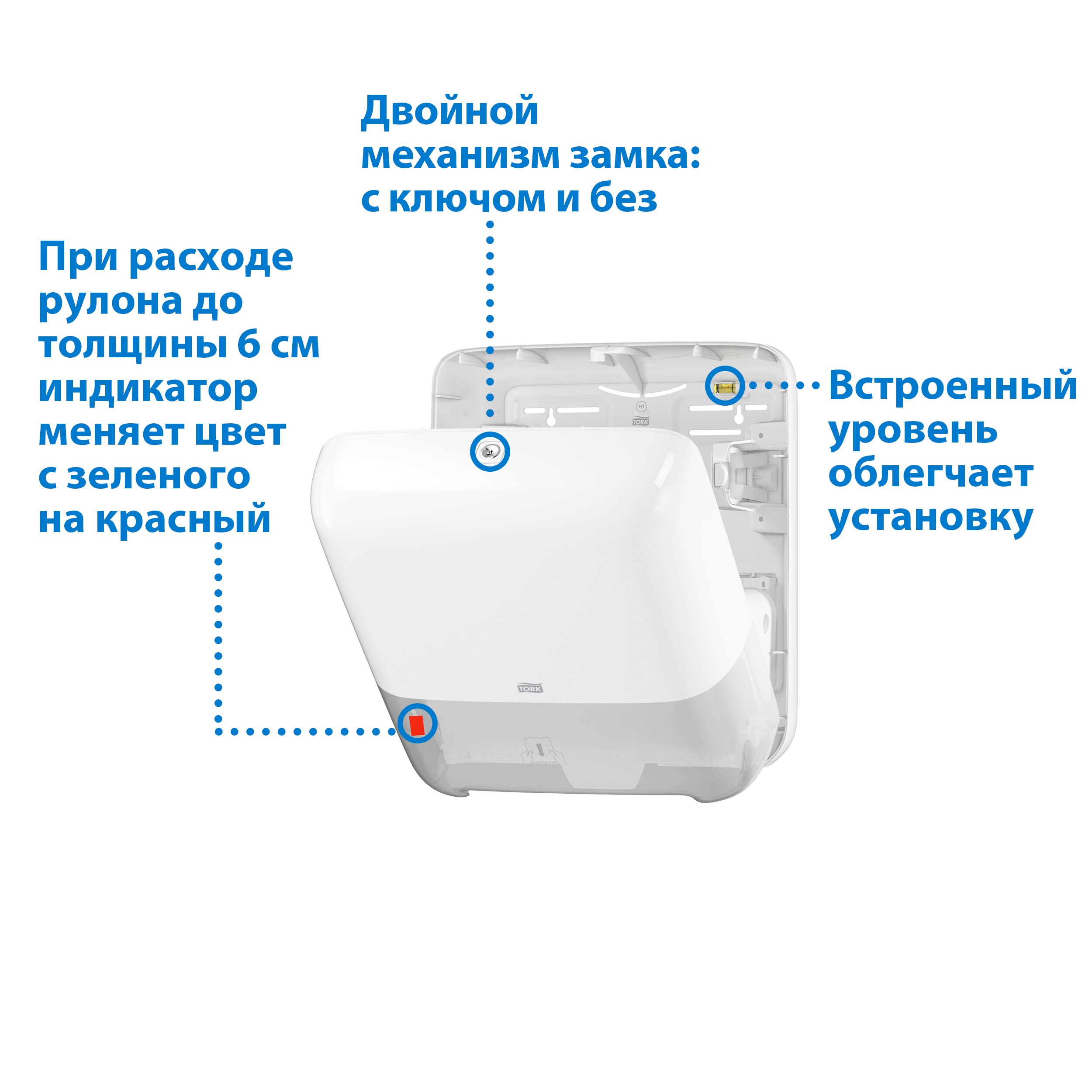 - Удобство технического обслуживания благодаря индикатору перезаправки, который показывает, когда полотенца закончатся