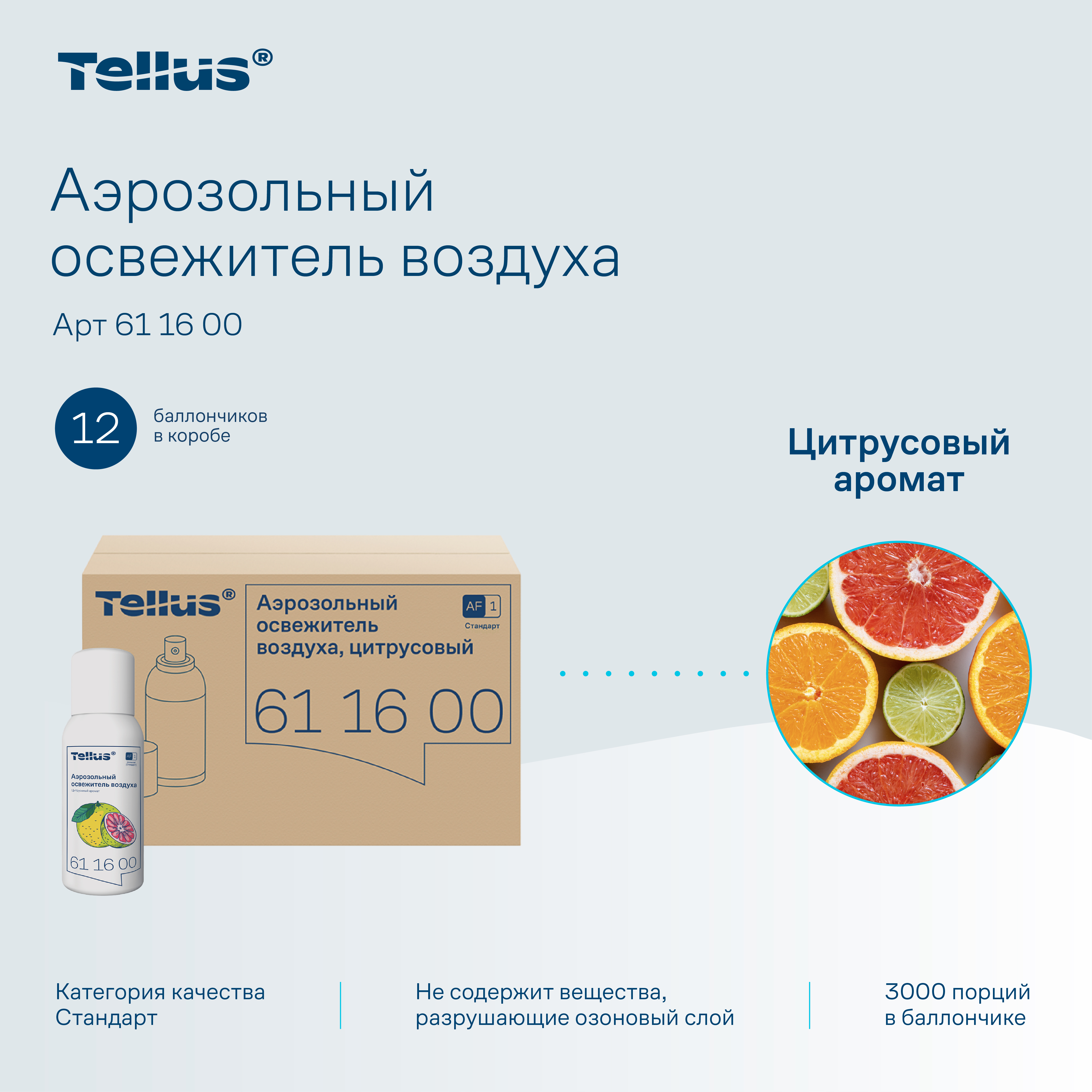 Tellus аэрозольный освежитель воздуха, цитрусовый аромат