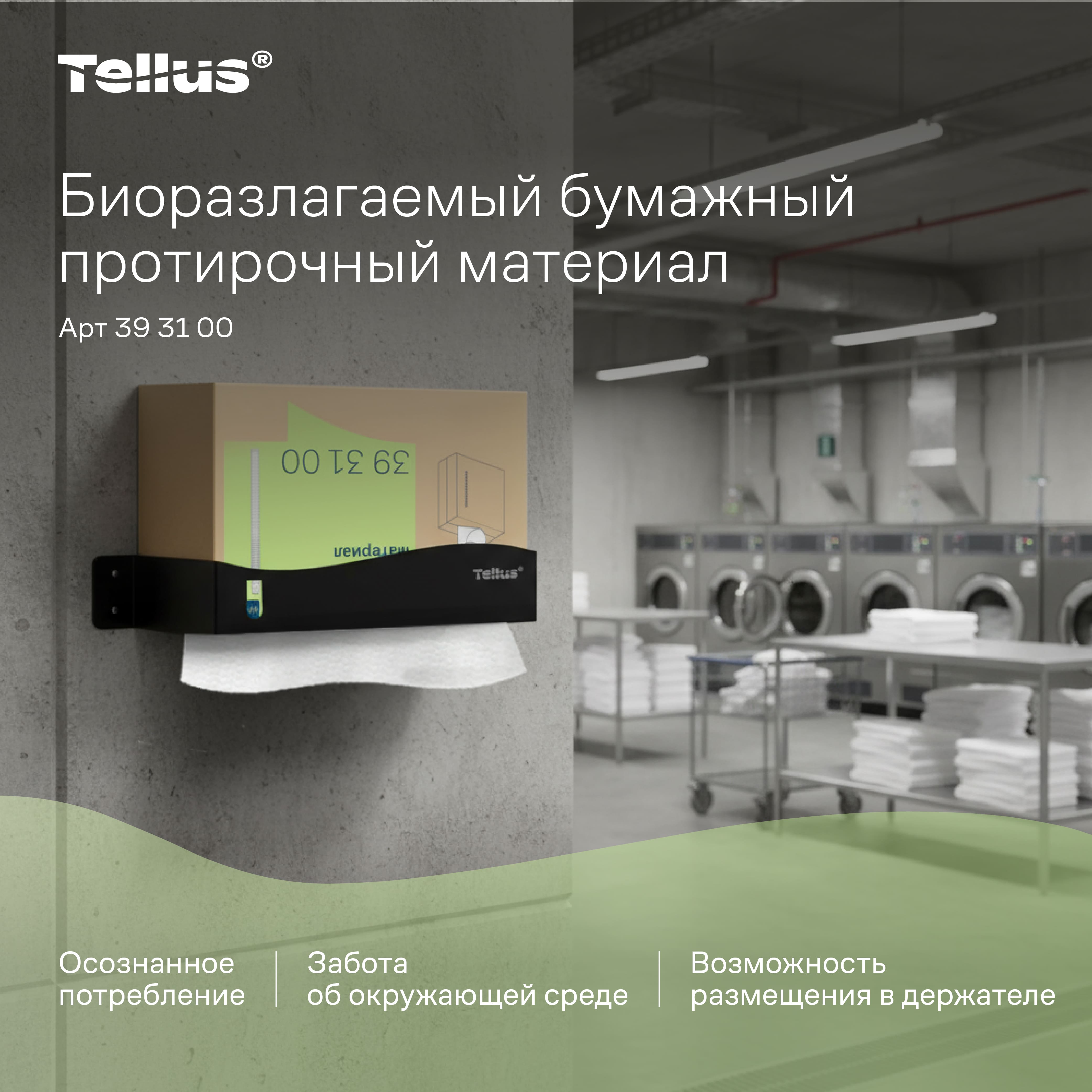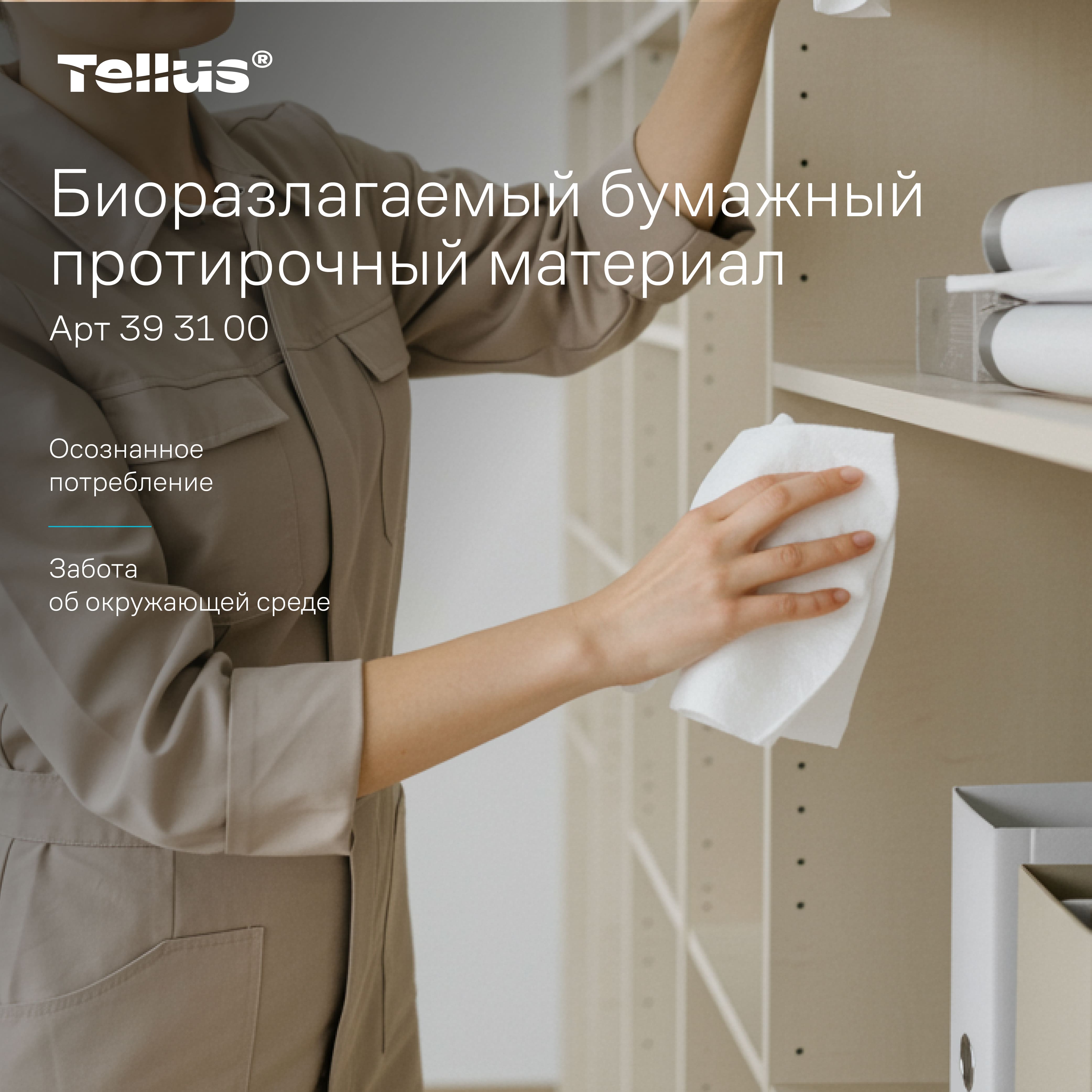 Биоразлагаемый бумажный протирочный материал Tellus обладает высокой впитывающей способностью, эффективно поглощая воду и другие жидкости. Подходит для использования на кухне. Продукт из 100% целлюлозы — способствует заботе об окружающей среде.