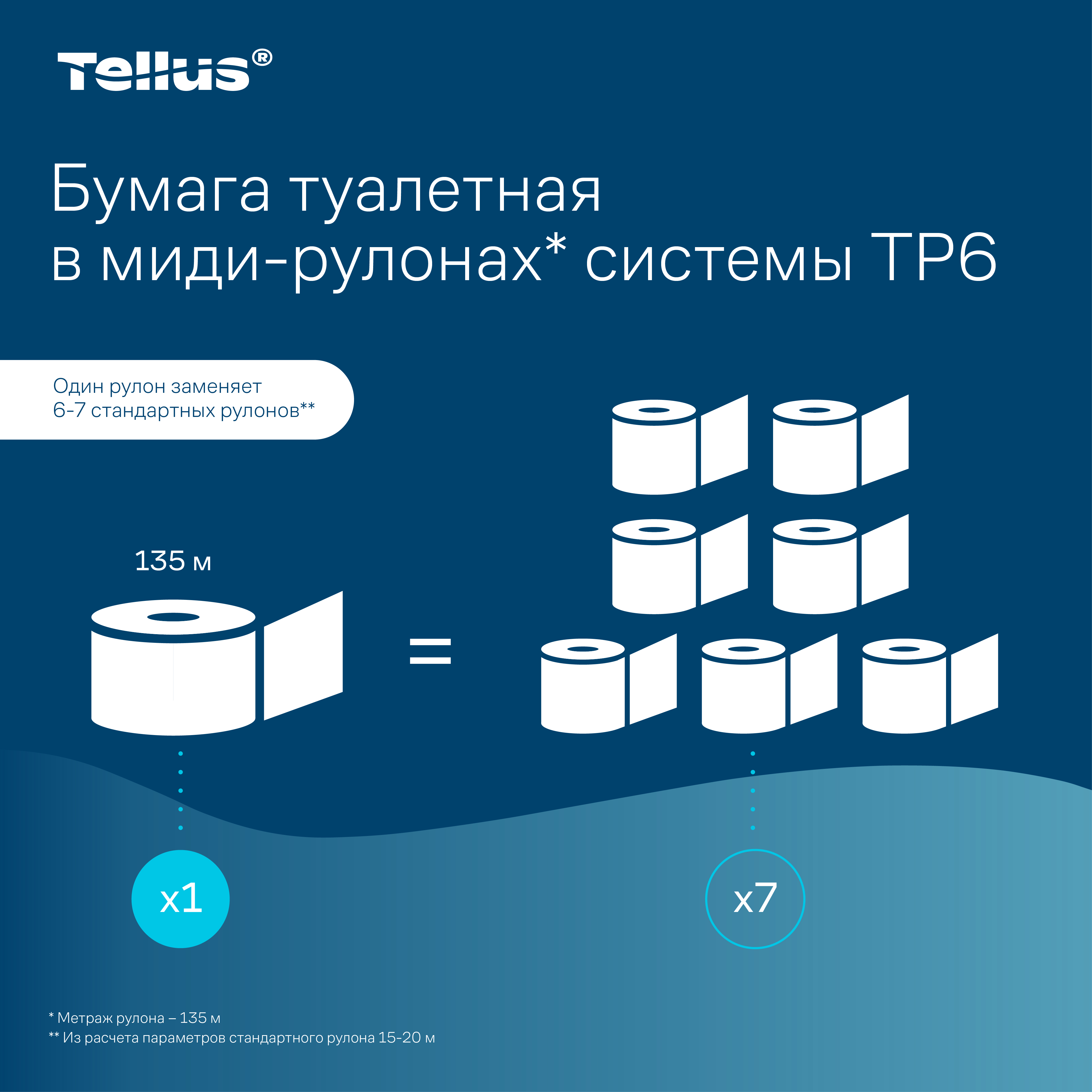 - Длина – 135 метров: 1 рулон заменяет 6-7 стандартных рулонов