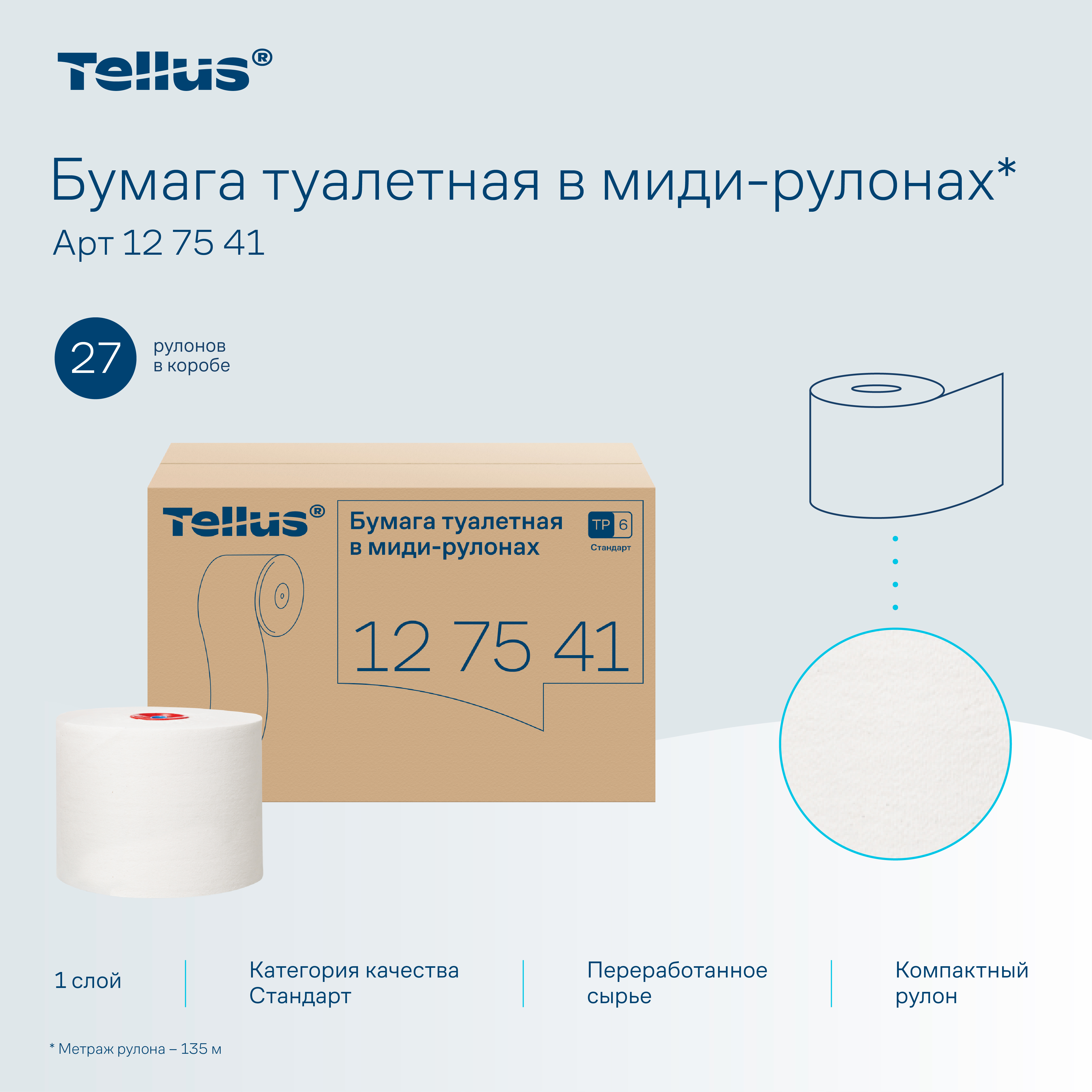 Tellus бумага туалетная в миди-рулонах