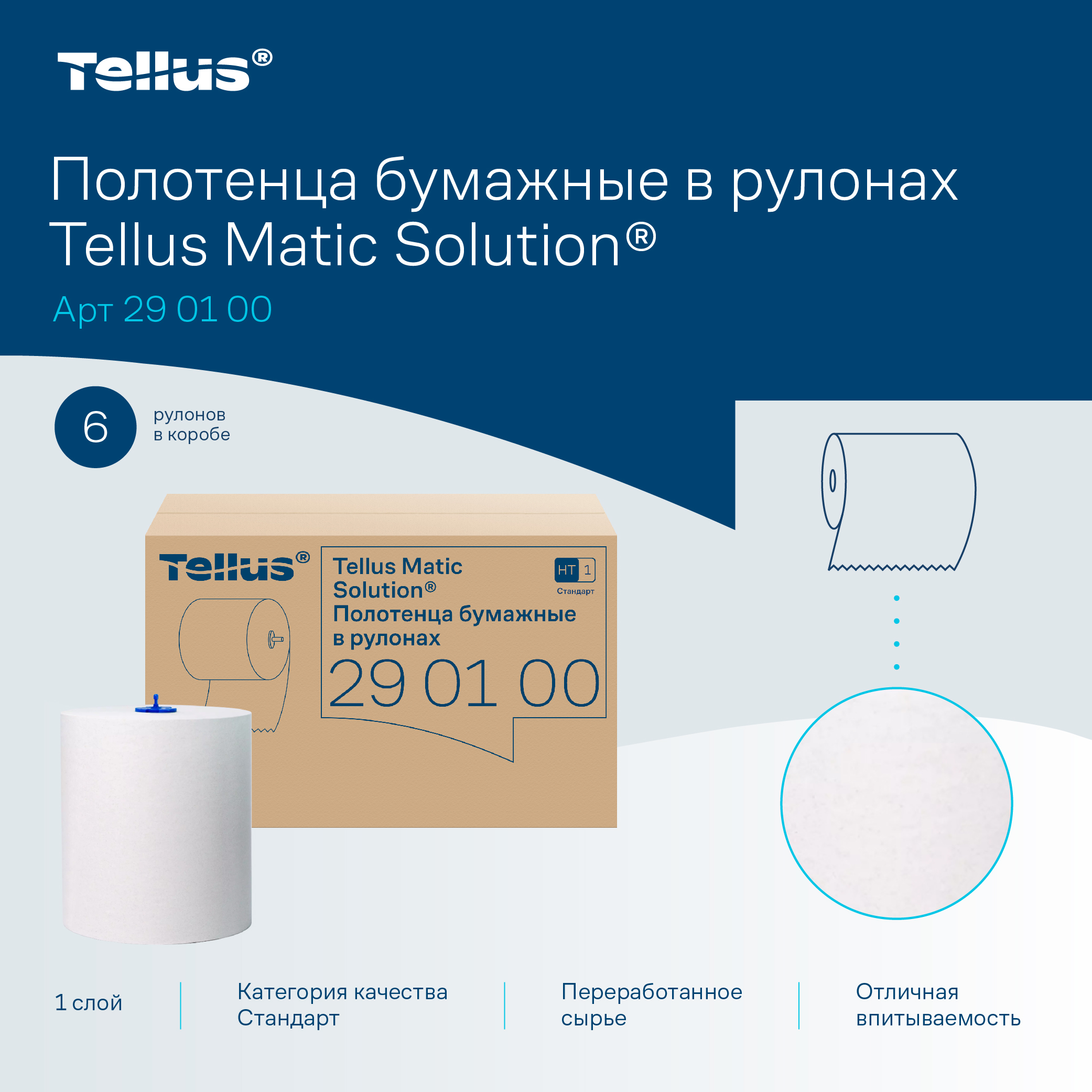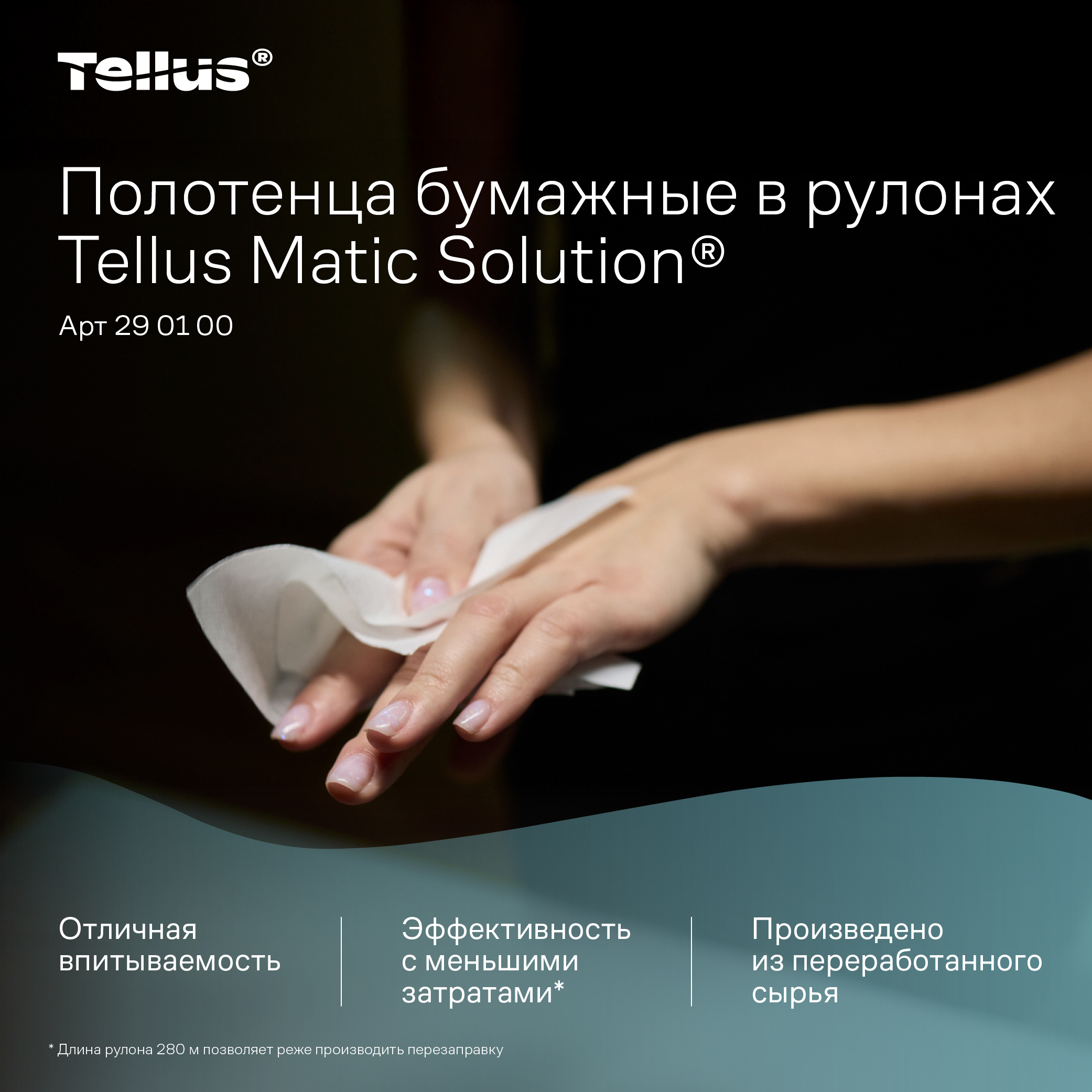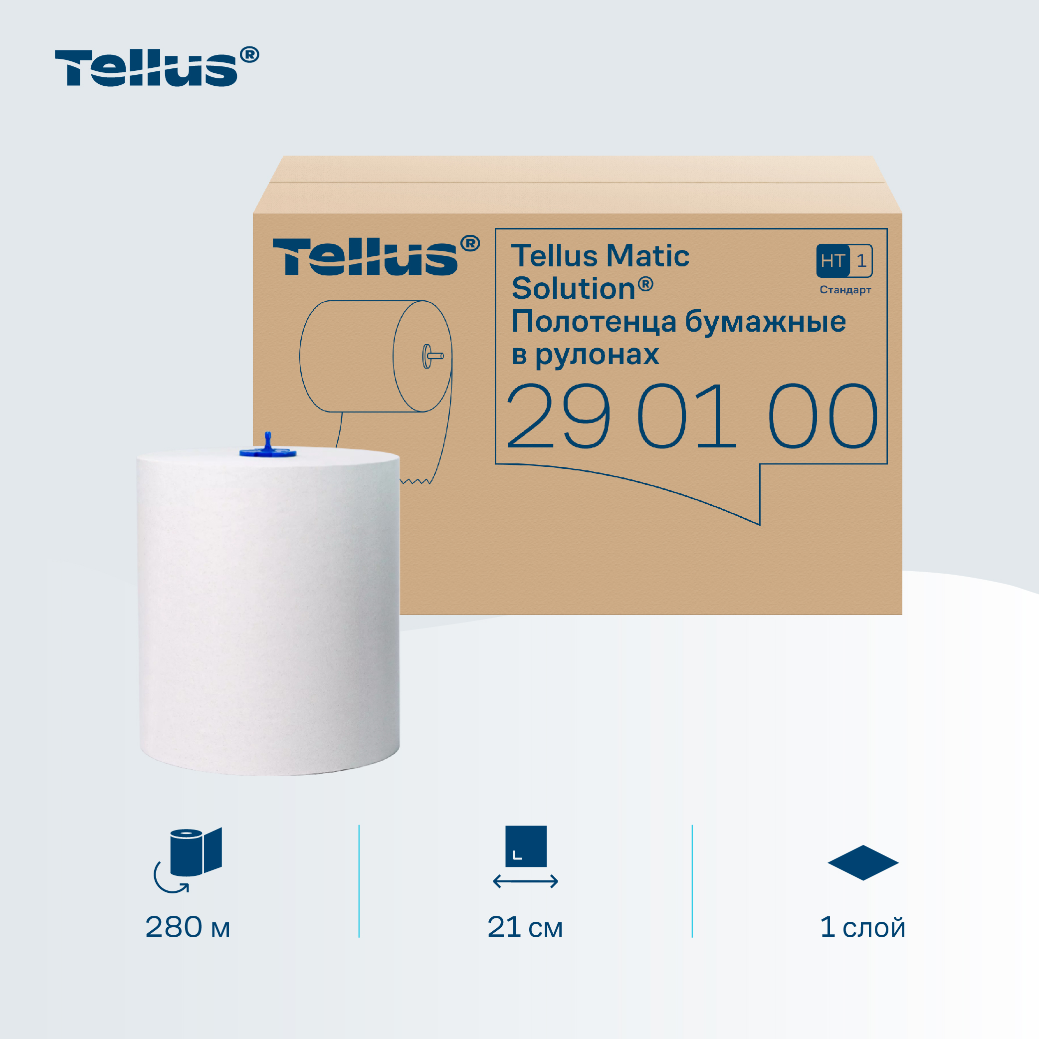 Продукт используется в диспенсерах Tellus системы HT1, которые позволяют получить необходимое количество бумаги и уменьшить количество отходов. Бумажные полотенца подходят для объектов коммерческого сектора, HoReCa, медицины и производственных площадок, где важны рациональное использование расходных материалов и поддержание чистоты в туалетных комнатах.