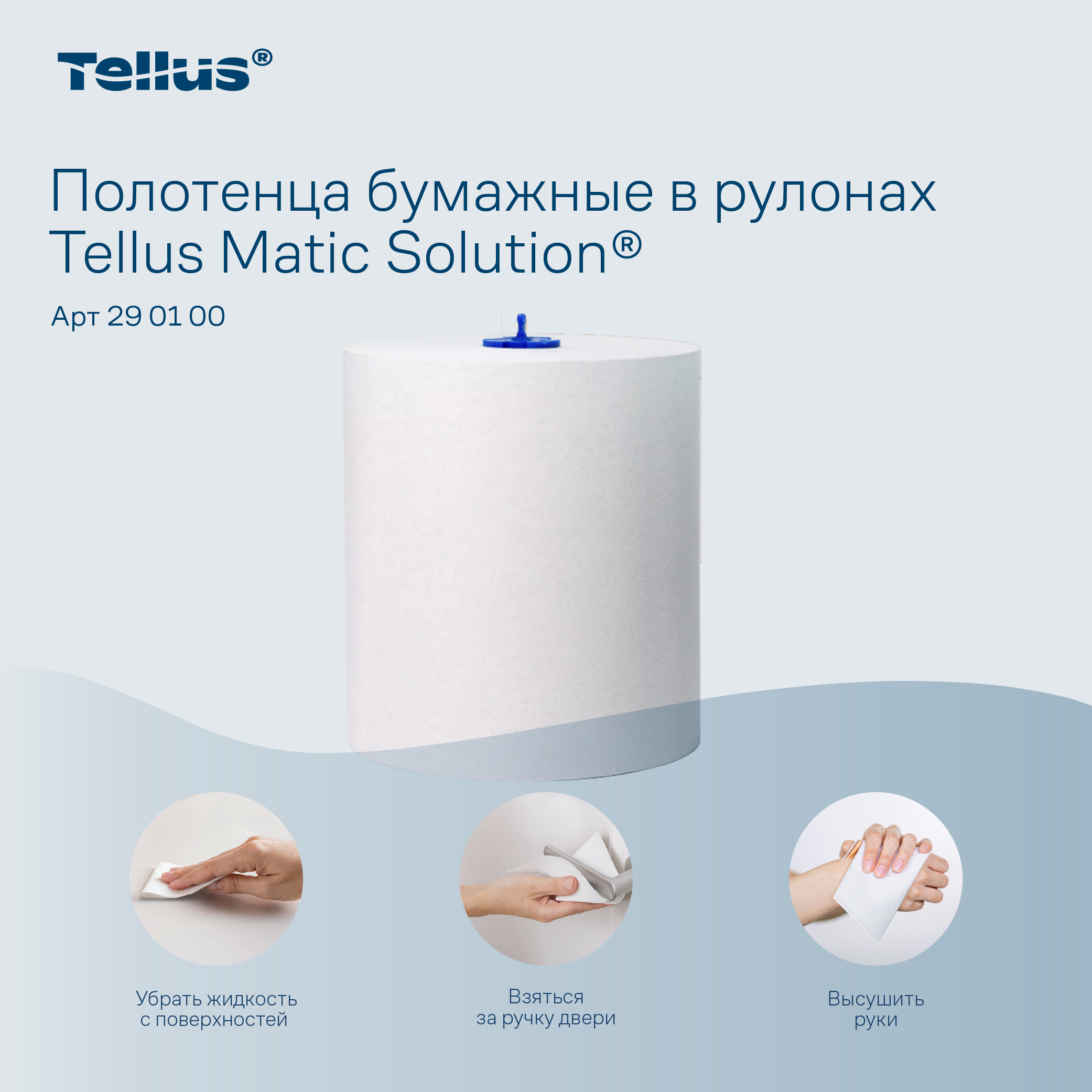 Tellus Matic Solution® бумажные полотенца в рулонах предназначены для использования в туалетных комнатах с высокой проходимостью, где важно обеспечить стабильное наличие расходных материалов.