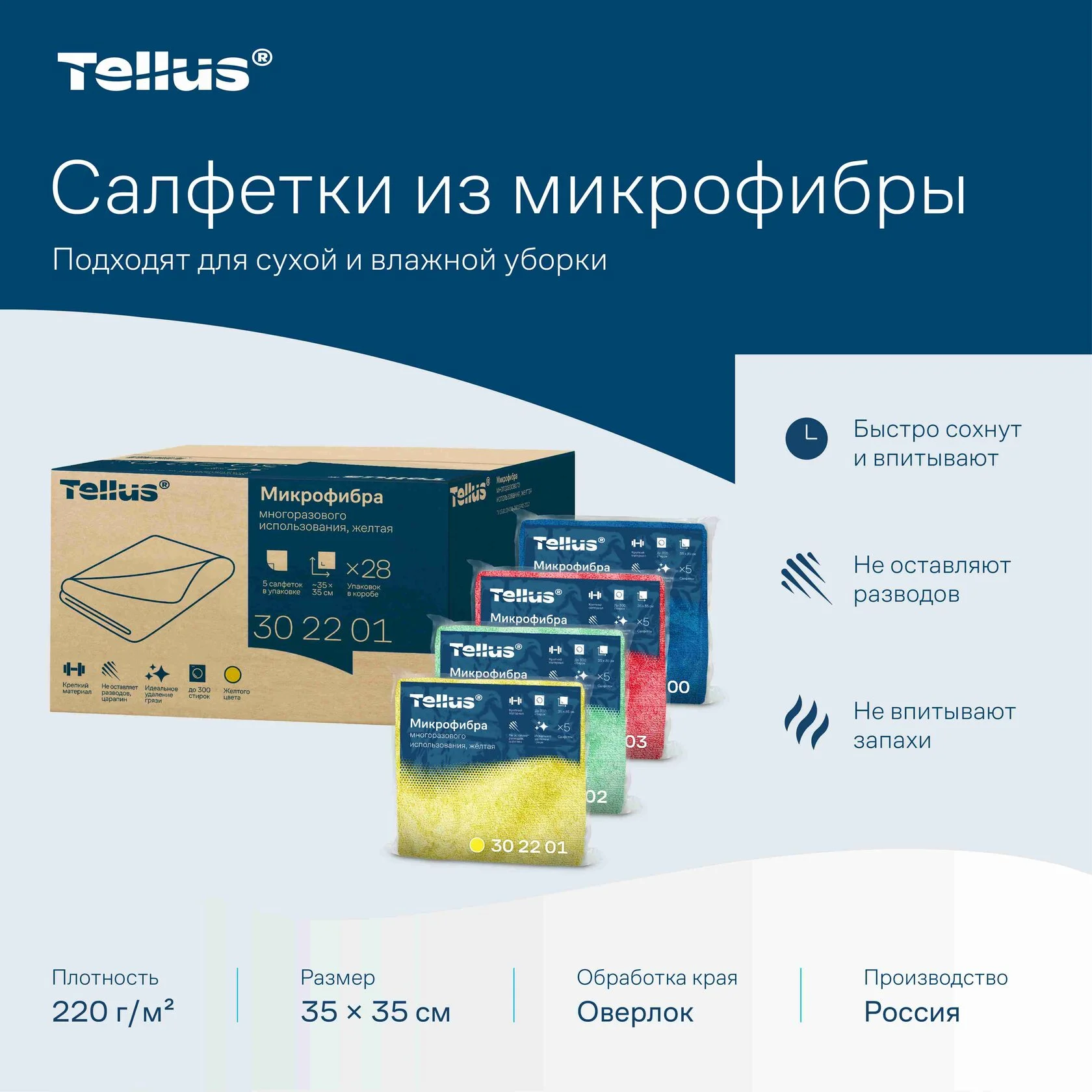 Салфетки Tellus из микрофибры представлены в четырех основных цветах, соответствующих принципам цветовой кодировки в рамках системы безопасности ХАССП: синие (арт. 302200), желтые (арт. 302201), зеленые (арт. 302202), красные (арт. 302203). Благодаря этому салфетки могут использоваться не только для уборки офисов, но и в сферах HoReCa, а также производствах, где необходимо контролировать уборку различных зон и поверхностей и разных типов загрязнений для снижения риска перекрестного контакта. С помощью салфеток Tellus можно очищать такие чувствительные поверхности, как оконные стекла, зеркала, мониторы, оптику, зоны кухни и туалетной комнаты.
