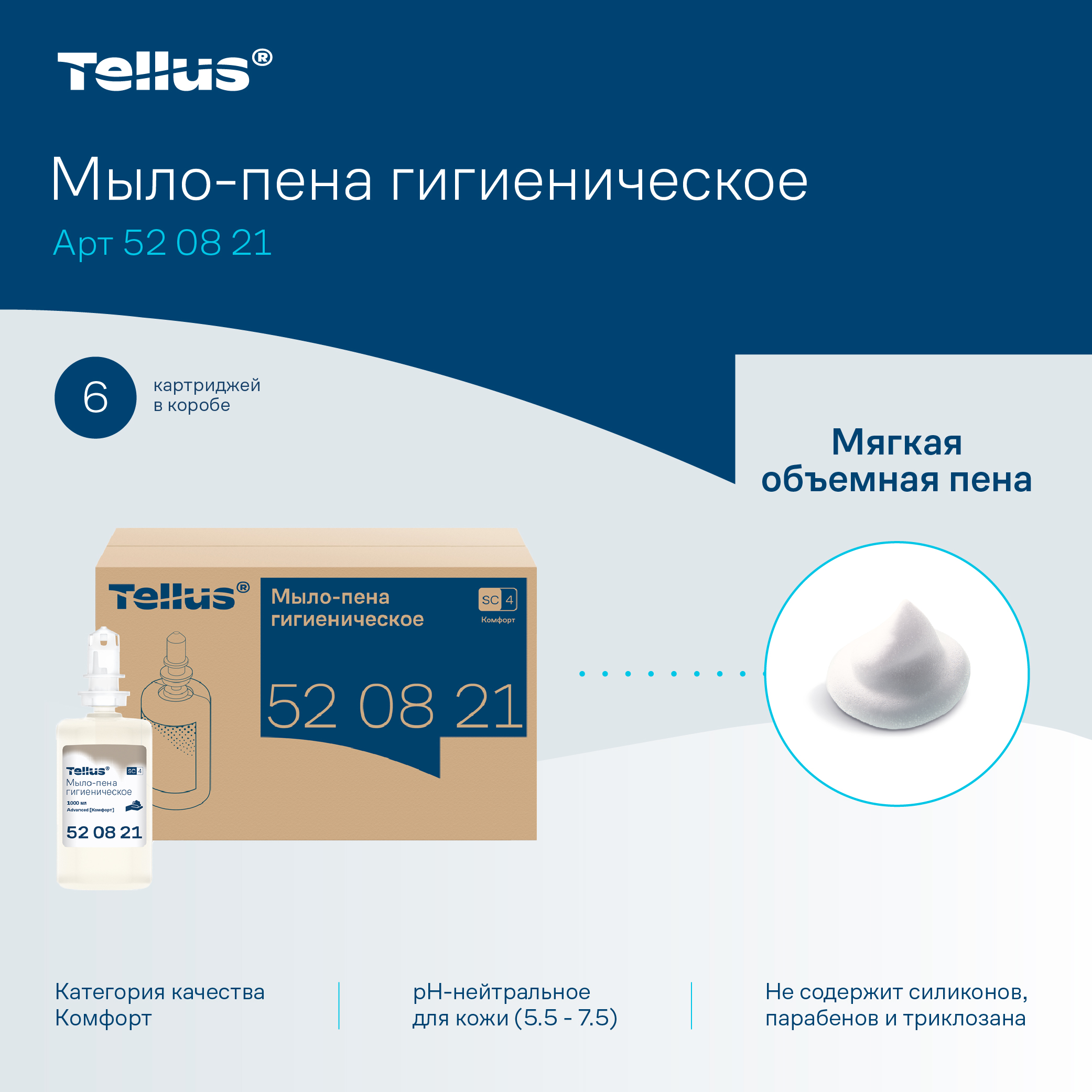 Предложите посетителям мыло-пену, не содержащее отдушек и красителей. Tellus мыло-пена гигиеническое эффективно устраняет грязь и бактерии, имеет правильную реологию. Устраняет неприятные запахи и микробы. Безопасно благодаря мягким биоразлагаемым ПАВ на основе вытяжки из свеклы и кокосового масла. Подходит для разных типов кожи. Специальный картридж образует мягкую кремовую пену, обеспечивая 2500 порций.