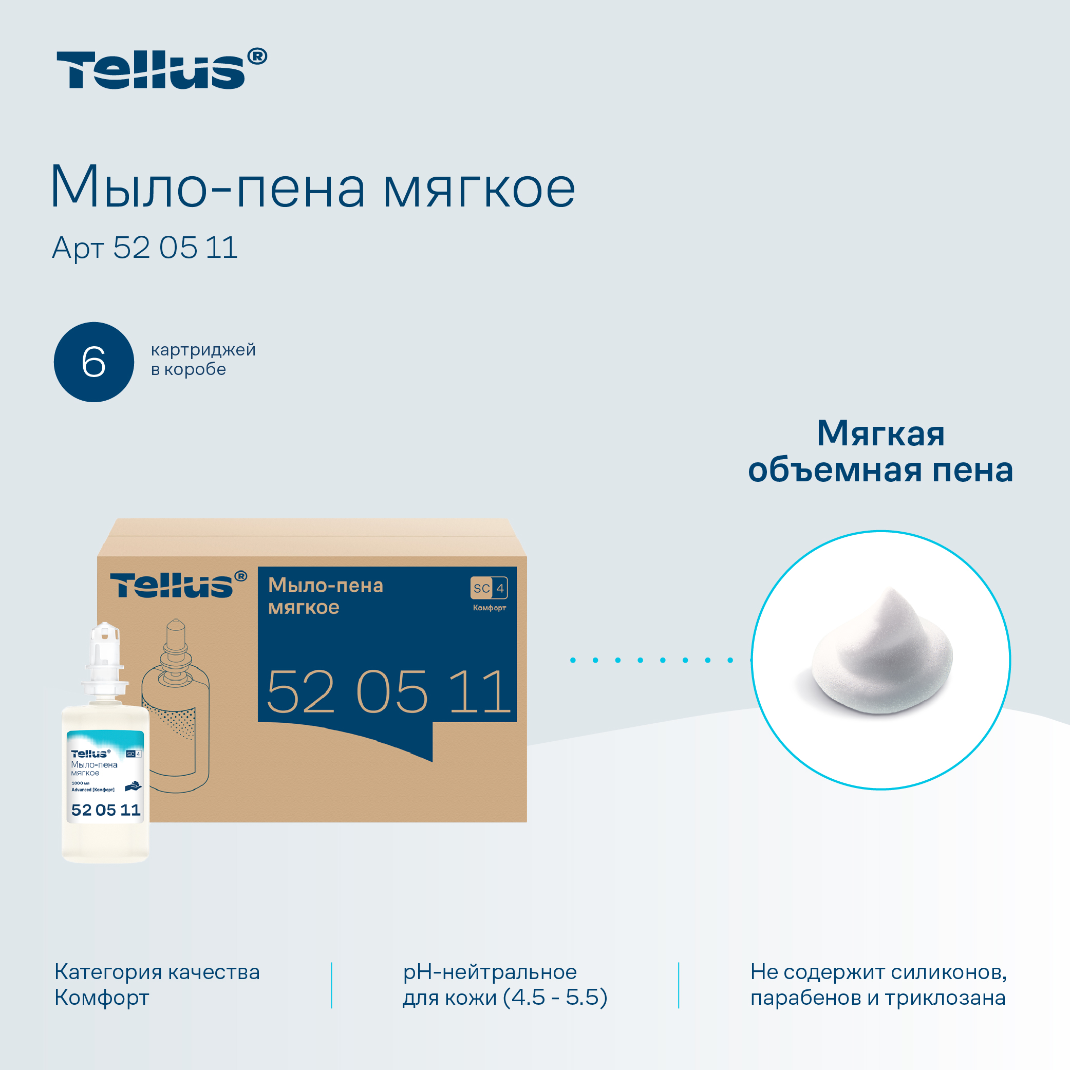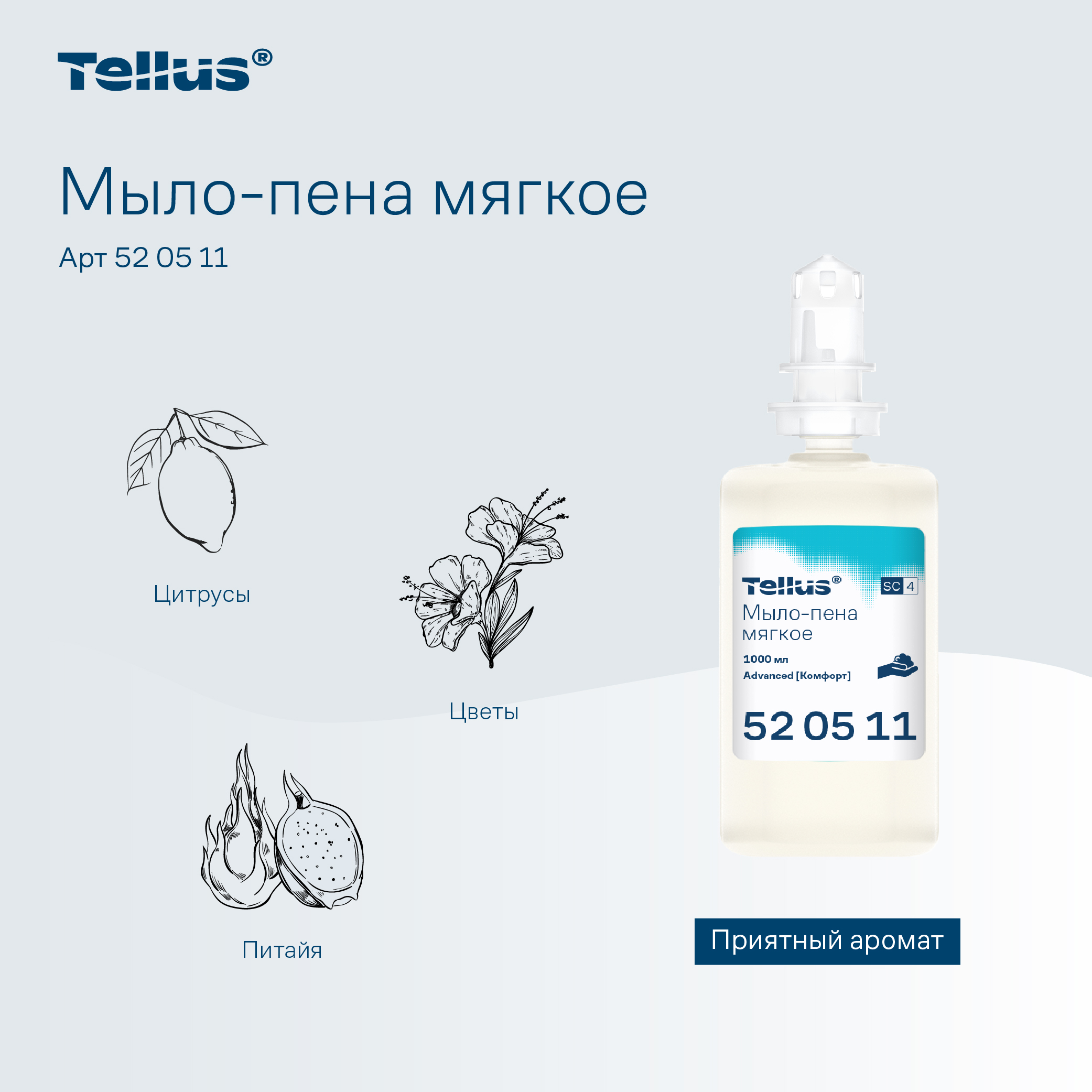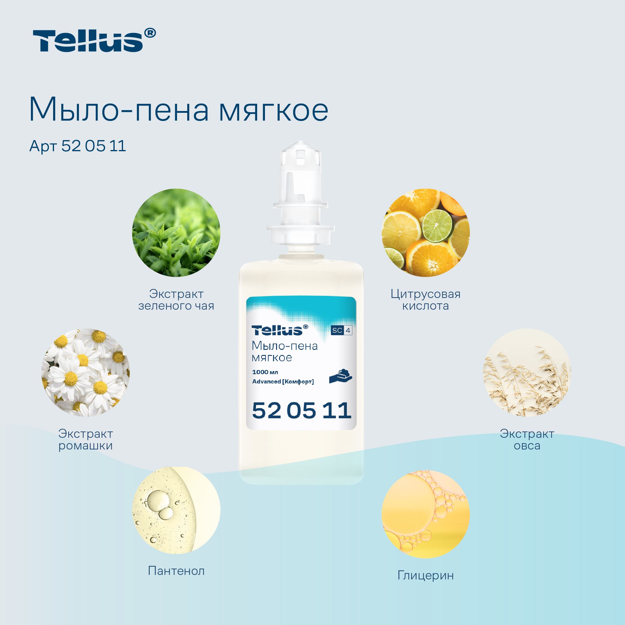 Предложите посетителям мыло-пену со свежим ароматом, которое подходит для разных типов кожи. Tellus жидкое мыло-пена мягкое содержит ряд экстрактов, которые стимулируют обновление и восстановление кожи, способствуют её питанию, увлажнению и смягчению. Специальный картридж образует мягкую кремовую пену для бережного мытья рук. Подходит для использования в диспенсерах для мыла-пены Tork*. ПАВ, используемые в составе продукта, оказывают бережное очищающее действие во время мытья рук.