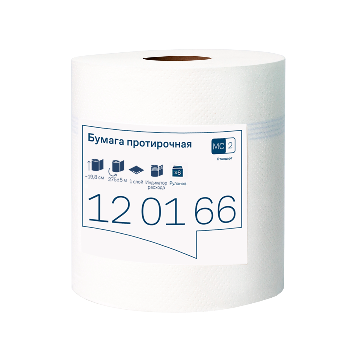 Это продукт системы M2 / MС2: рулон длинный — 275 метров, при этом сам формат компактный по габаритам (диаметр 18 см, ширина 19,8 см) и подходит под втулку с внутренним диаметром 5,9 см. Рулон выглядит нейтрально и подходит для рабочих зон, где расходный материал должен быть «просто рабочим» и без лишних деталей.