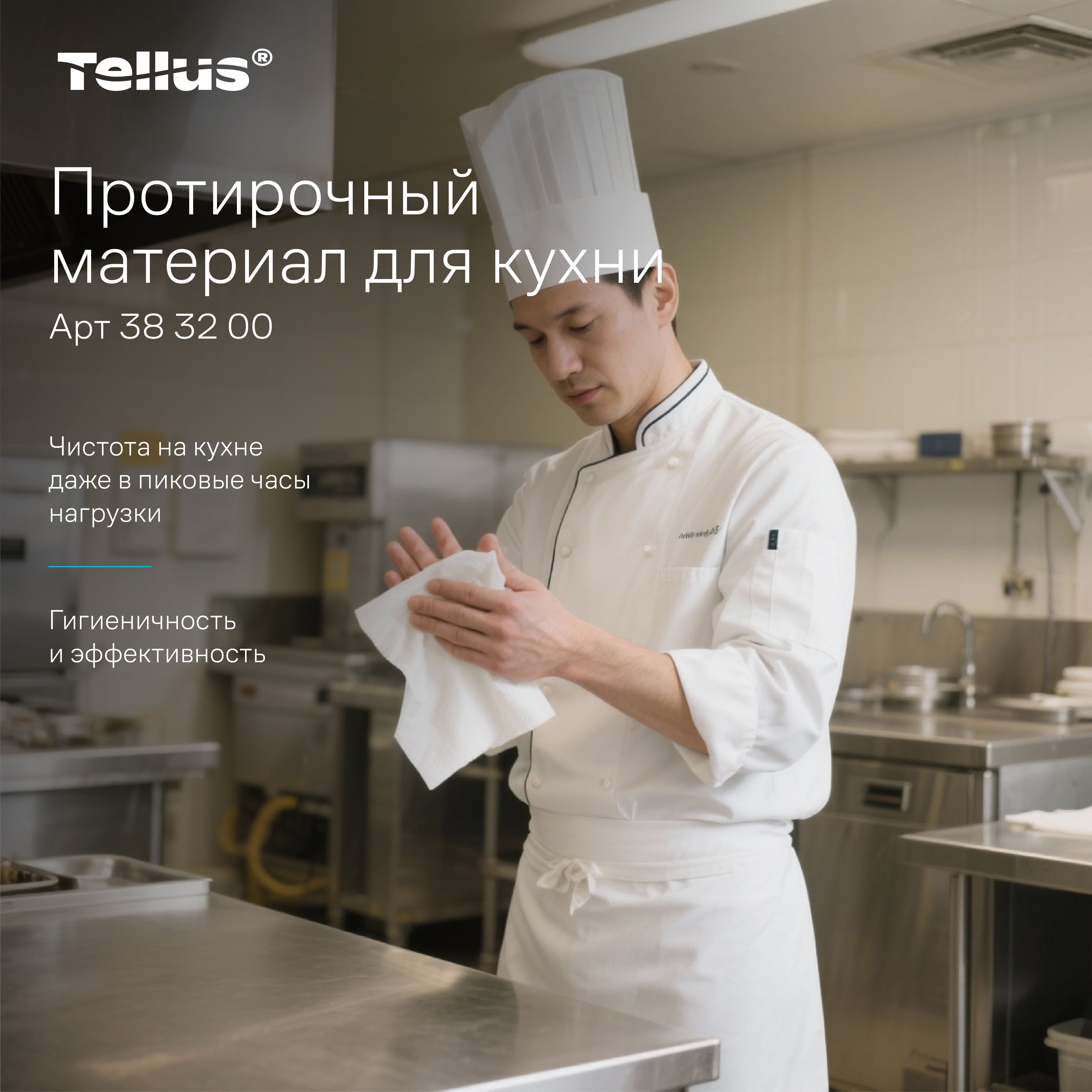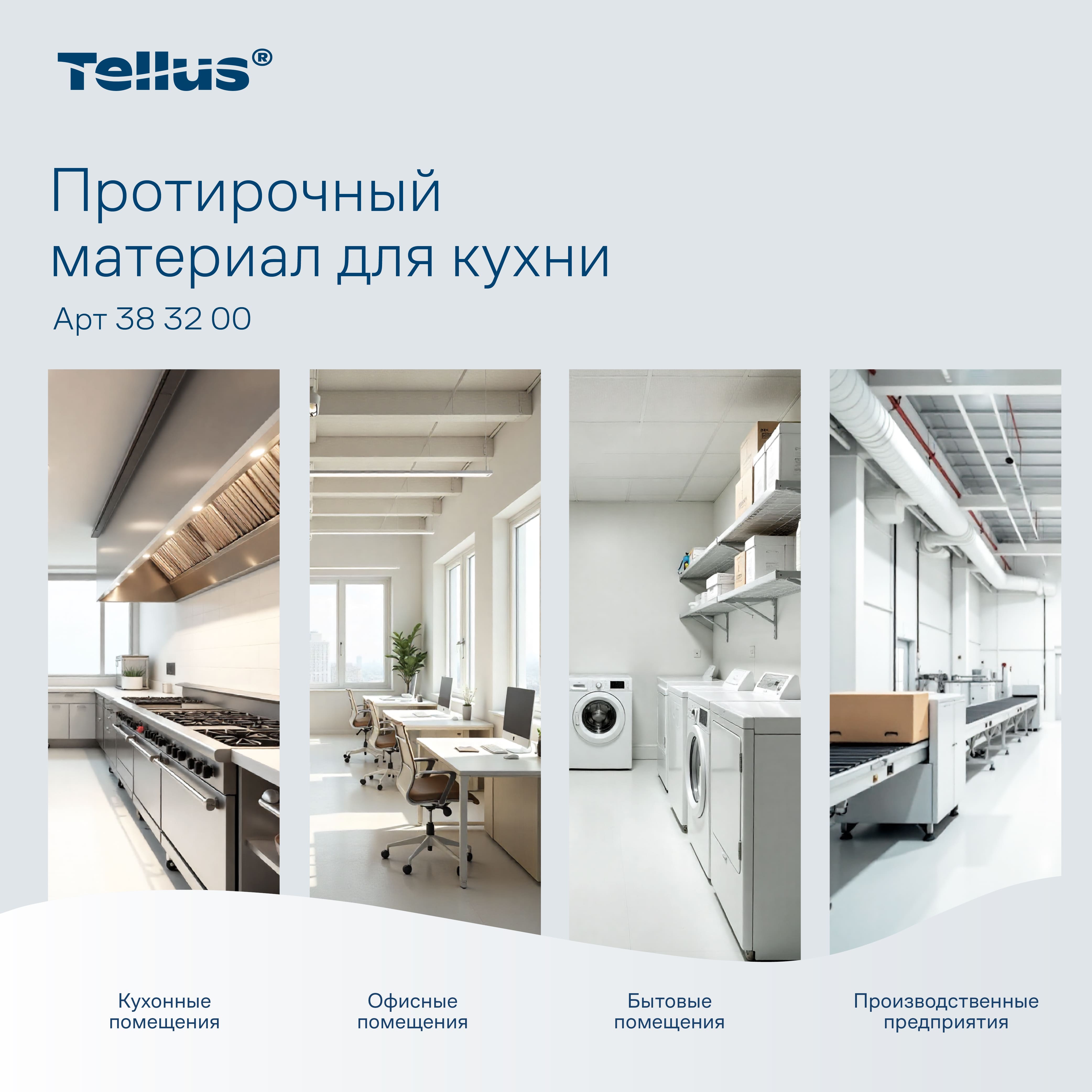 Протирочный материал для кухни Tellus — это плотный нетканый материал для повседневной уборки в зонах приготовления пищи. Подходит для большинства задач, где важны чистота и рациональный расход.