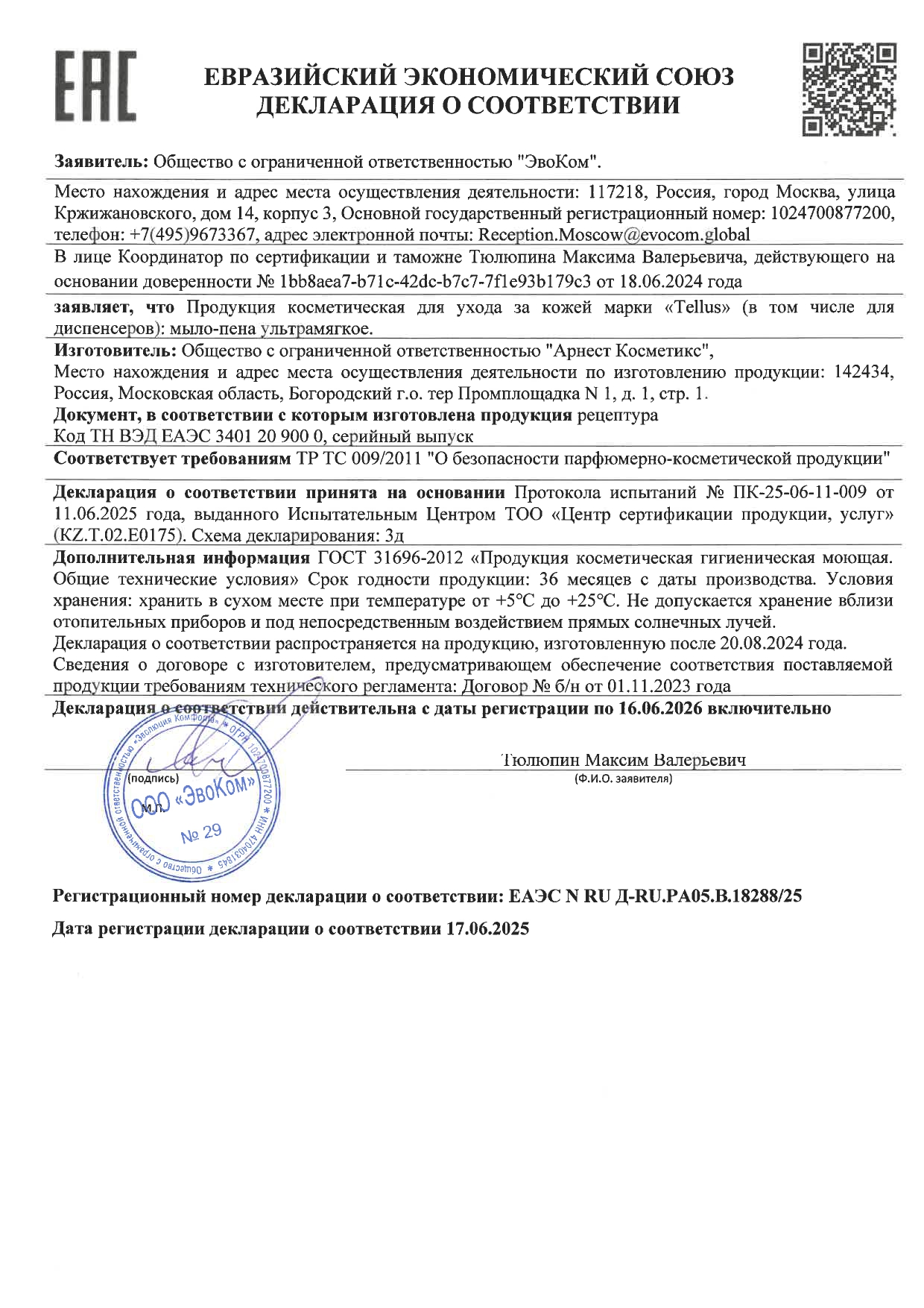 Ультрамягкое мыло-пена Tellus - это премиальный продукт, созданный для тех, кто ценит бережный уход и изысканные ароматы. Его мягкая, воздушная текстура наполняет удовольствием процесс ежедневного мытья рук, а элегантная композиция с нотами груши, ландыша, ириса, мха, мускуса и ванили дарит ощущение свежести и уюта.