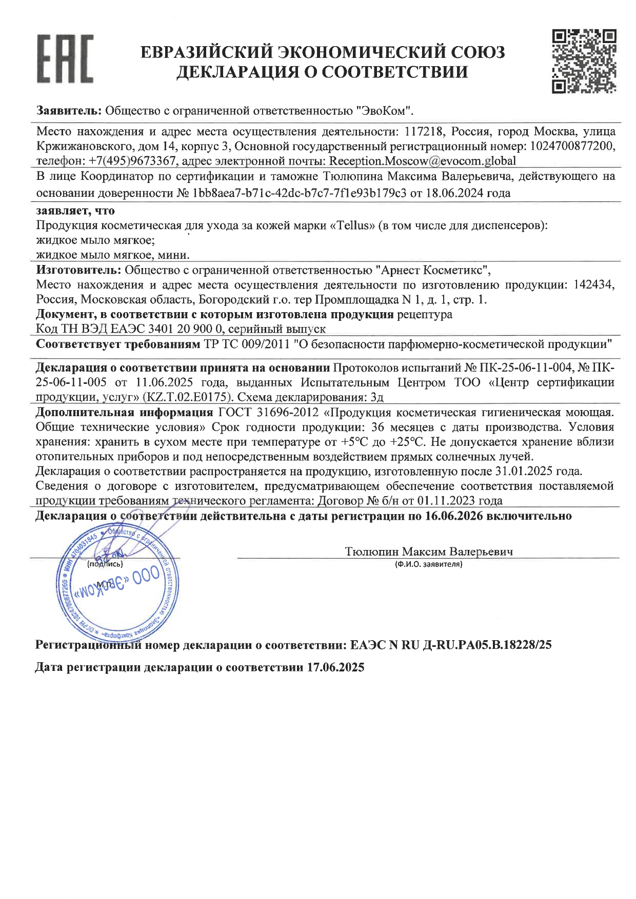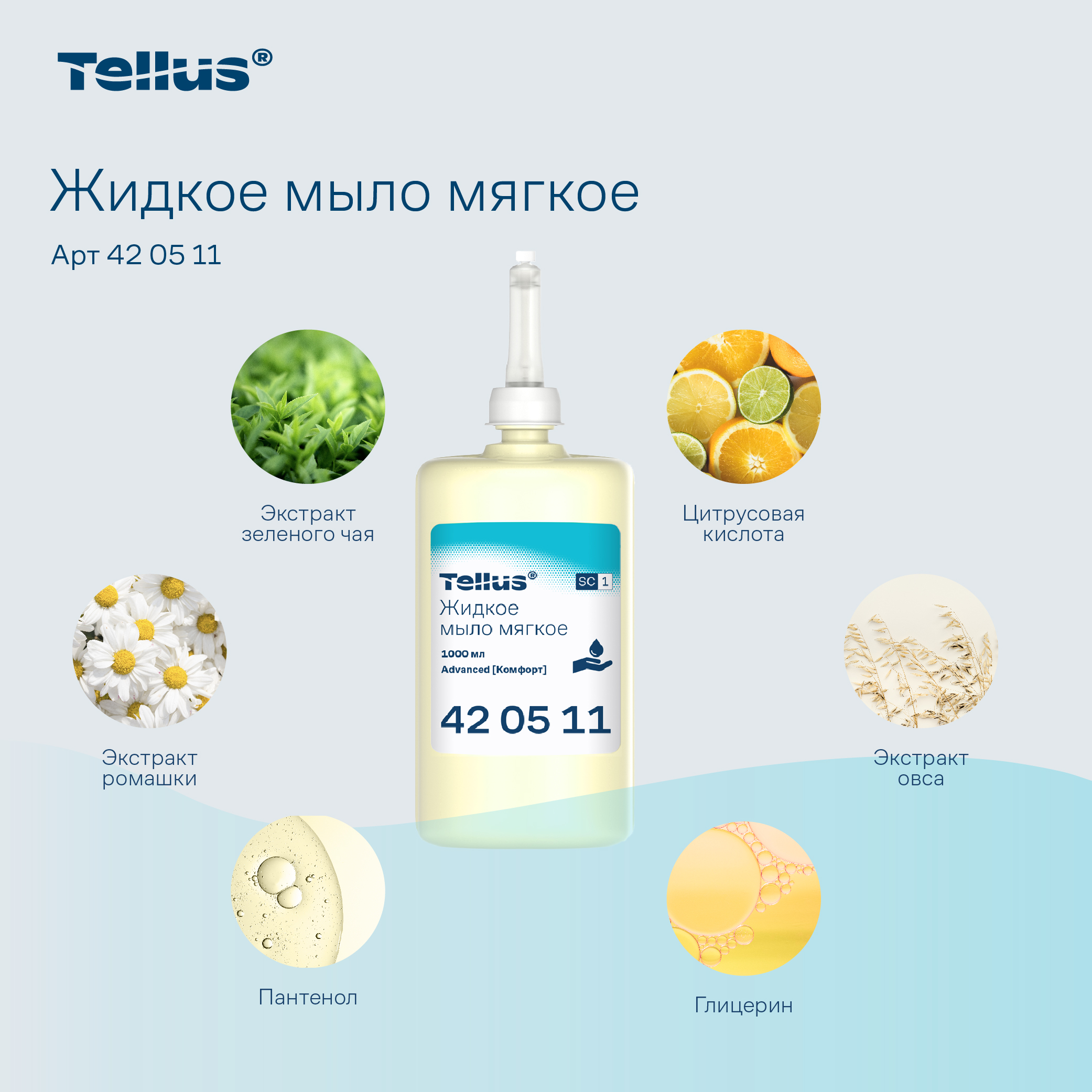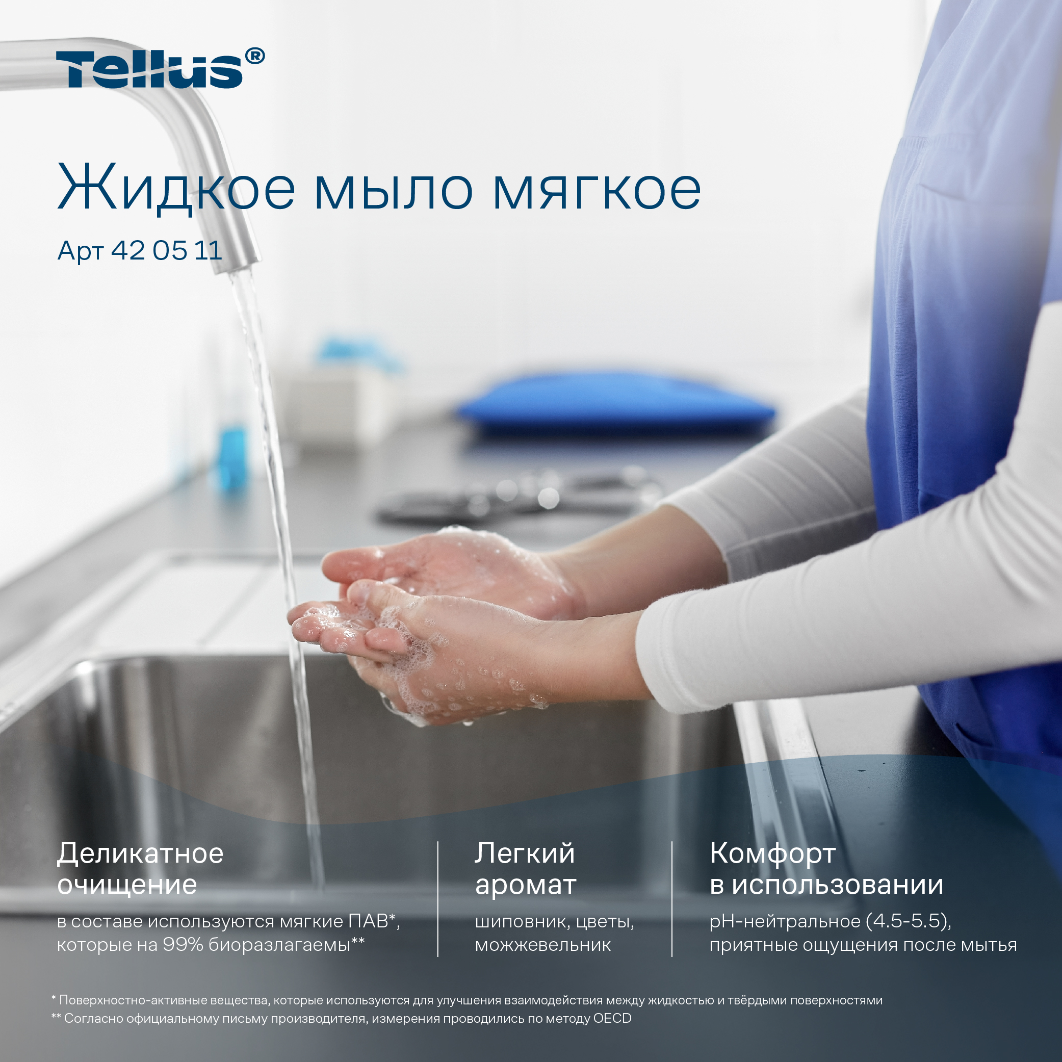 Предложите посетителям жидкое мыло с цветочным ароматом, которое подходит для разных типов кожи. Tellus жидкое мыло мягкое содержит ряд экстрактов, которые стимулируют обновление и восстановление кожи, способствуют её питанию, увлажнению и смягчению. Подходит для использования в диспенсерах для мыла-пены Tork*. ПАВ, используемые в составе продукта, оказывают бережное очищающее действие во время мытья рук.